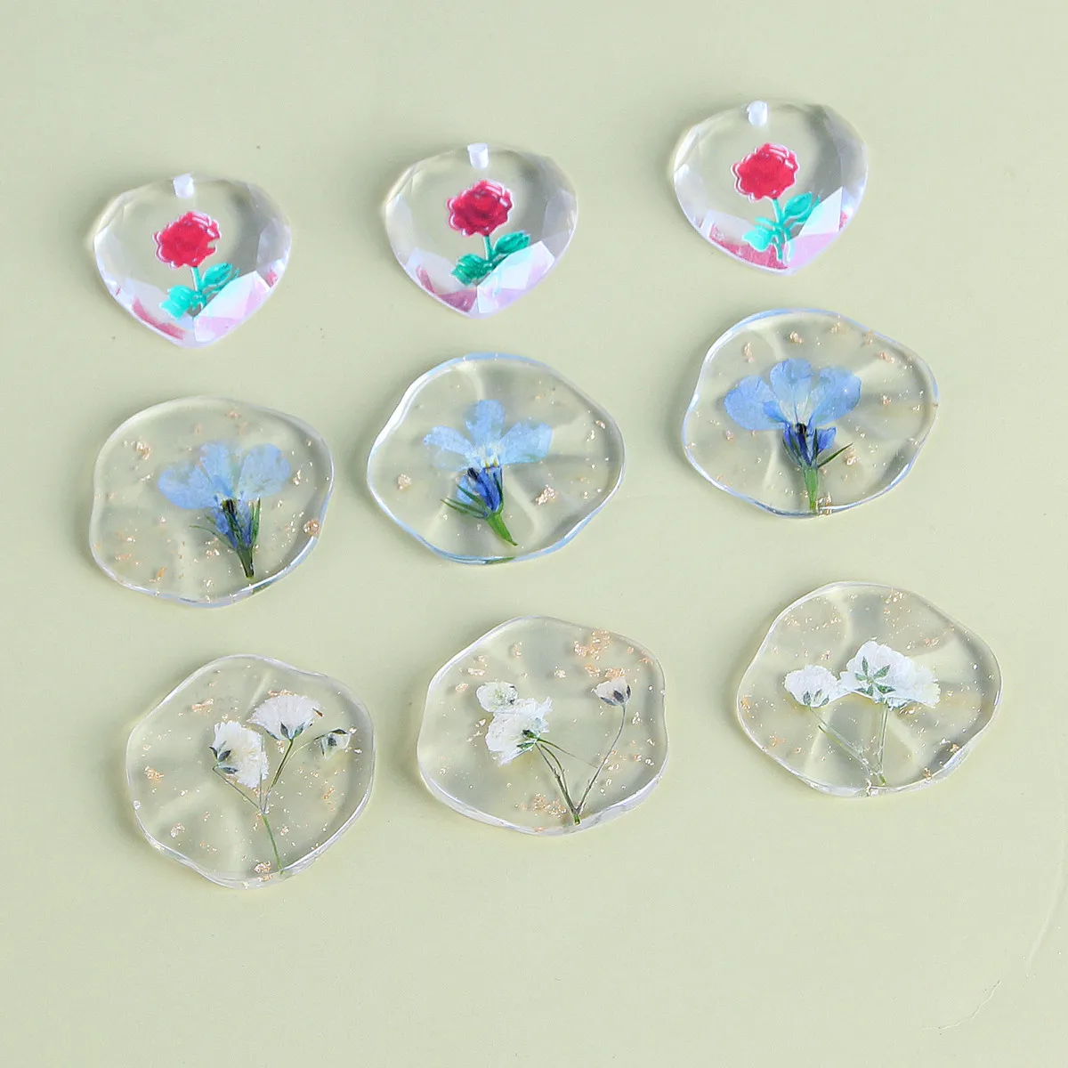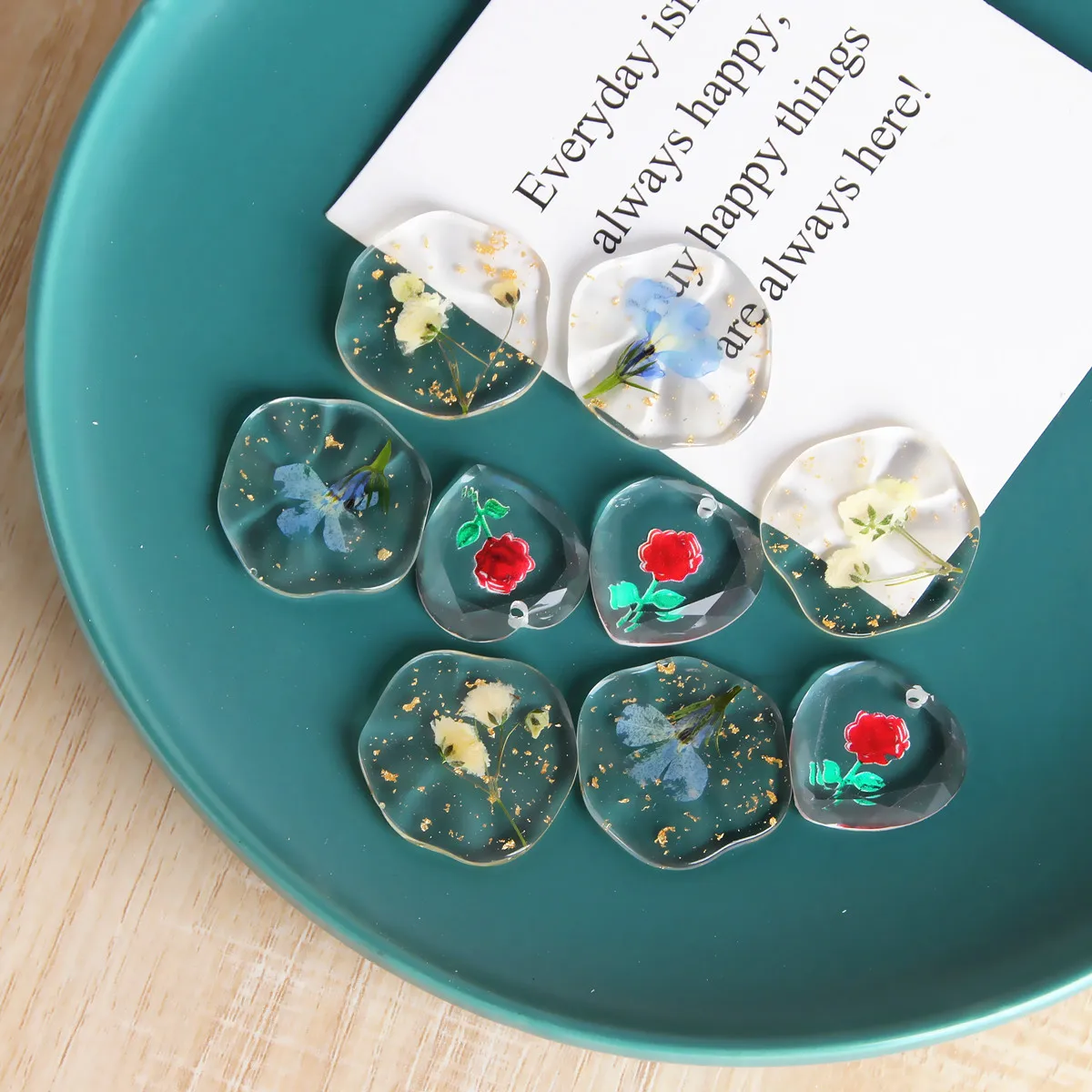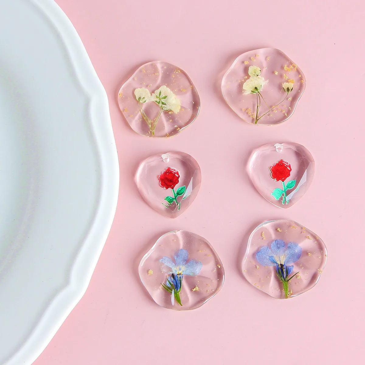 Купить Beautiful spring with Japanese uv glue natural flower hand seal in half a pill for stud earrings clip DIY strips accessories | Украшения и