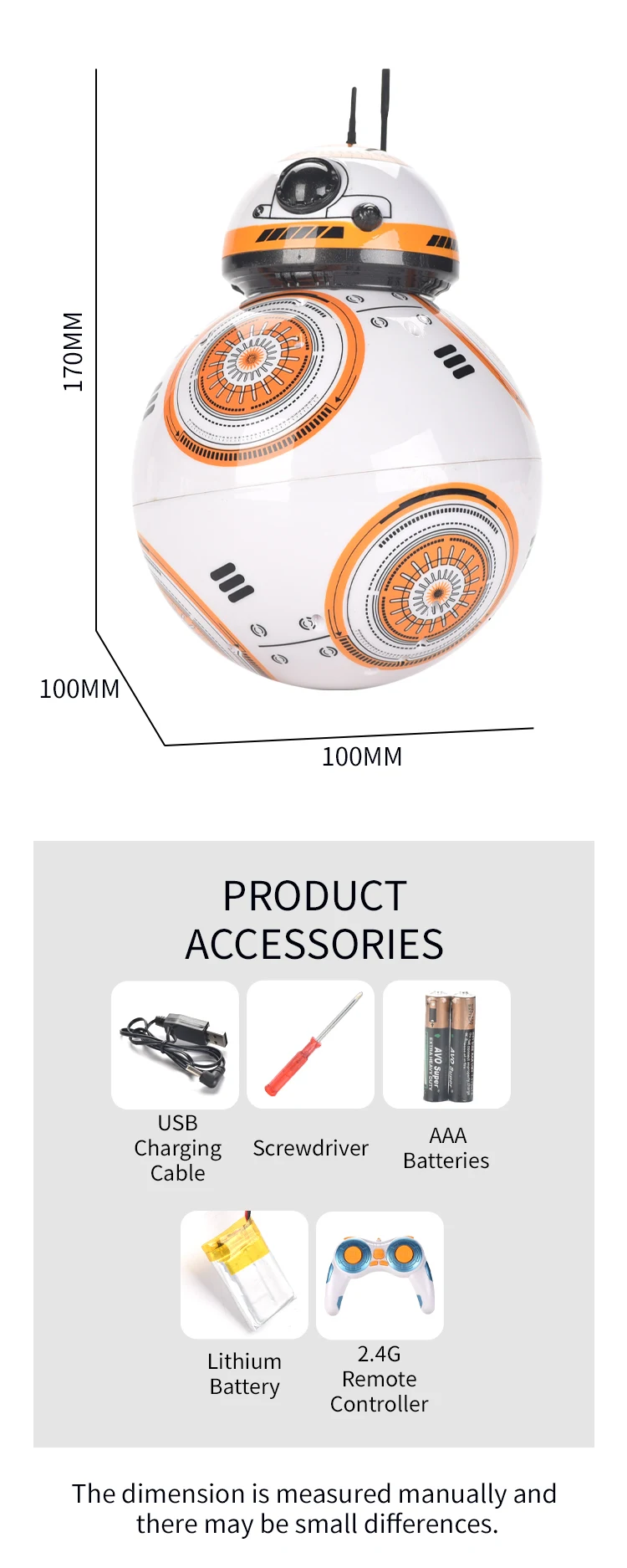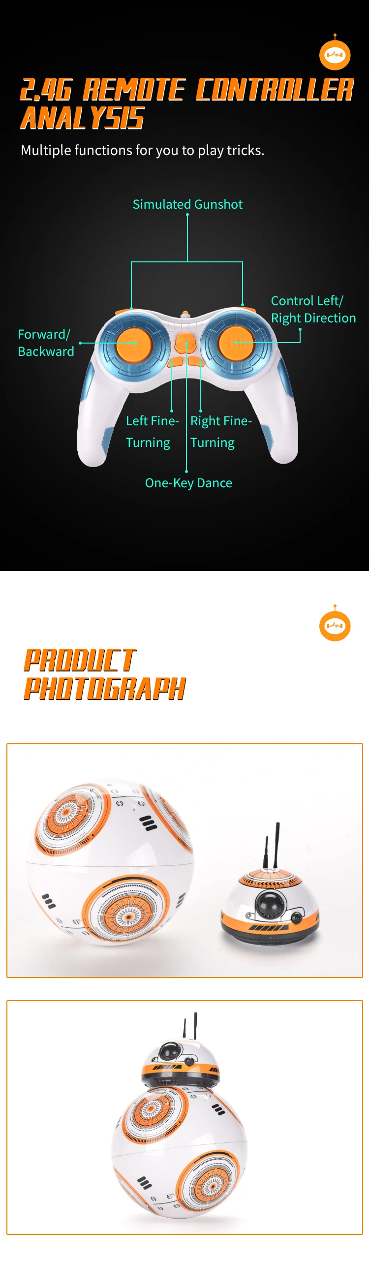 BB8 Smart Remote Control Robot 2.4G Remote Control Toy Dancing Rotating with Light and Music Remote Control Smart Ball