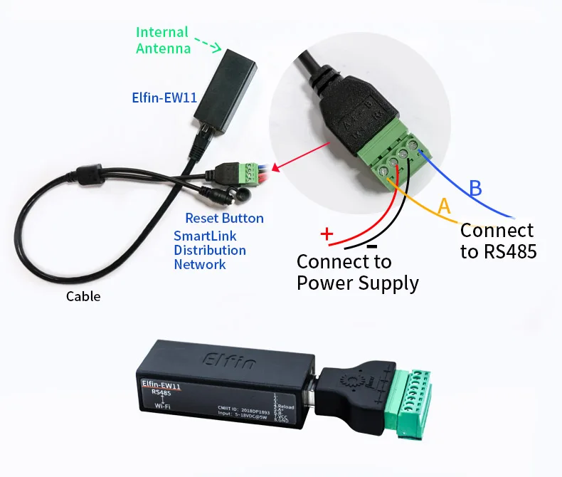 Elfin-EW11 последовательный порт RS485 к WiFi последовательный сервер устройств Поддержка порта TCP IP Telnet Modbus TCP протокол IOT преобразователь данныхПримечание: разница между EW11A и EW11A-0 заключается в том, что EW11A-0 включает антенну.
