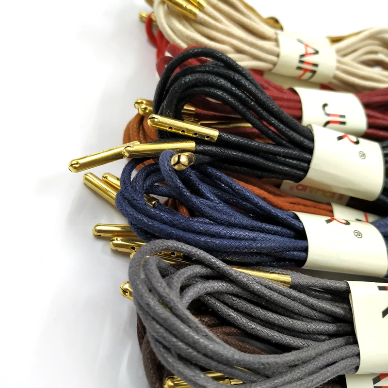 Отзывы о Тонкие круглые Вощеные шнурки с металлической головкой золотые холщовые унисекс