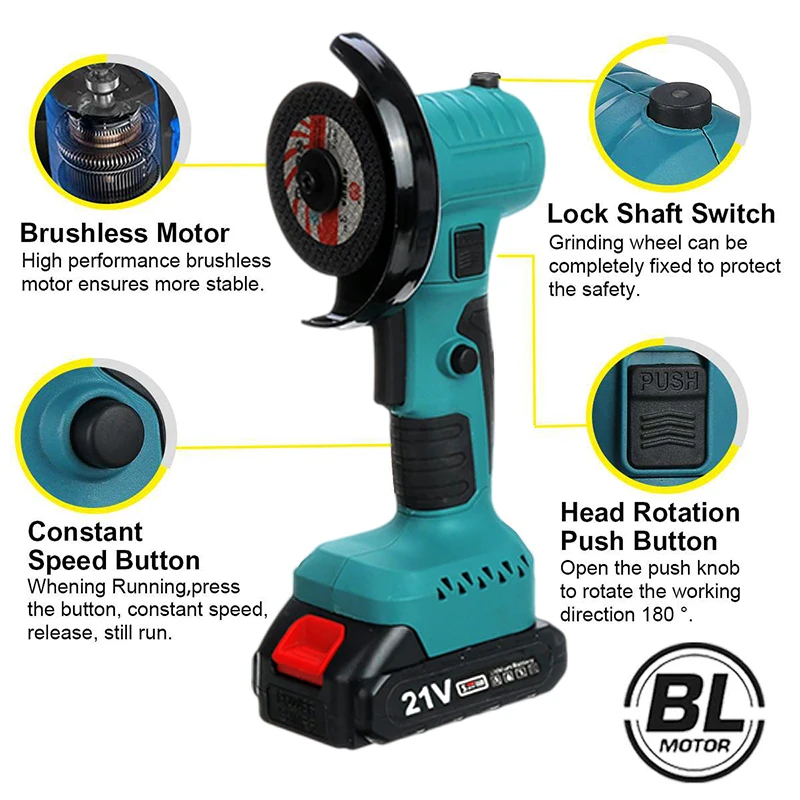 Купить 21V Brushless Mini Electric Angle Grinder Rechargeable 180° Rotation Polishing Machine for 18V Makita Battery | Инструменты