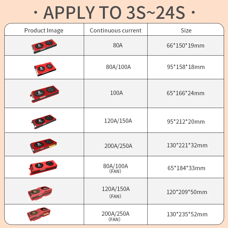 Клиент должен определить серии батарей, затем выбрать ту же серию BMS. Например, ваш аккумулятор 24S, вы должны выбрать 24S BMS, не можете выбрать 20 или другой. Номер серии BMS фиксирован, не регулируется после отправки BMS.