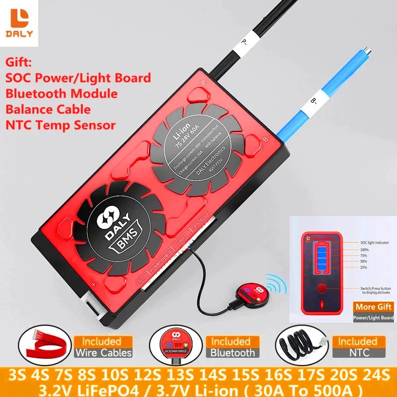 DALY BMS Подключение Bluetooth NTC Бесплатная мощность световая плата 3S к 24S LiFePo4 литиевый - купить