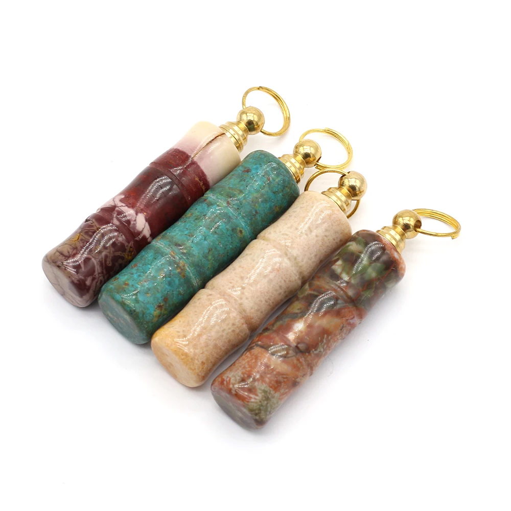 3PCSNatural Stone Coral Jade Perfume Bottle Slub Shape Pendant Essential Oil Diffuser For Jewelry Making Necklace Accessory Gift Украшения - купить