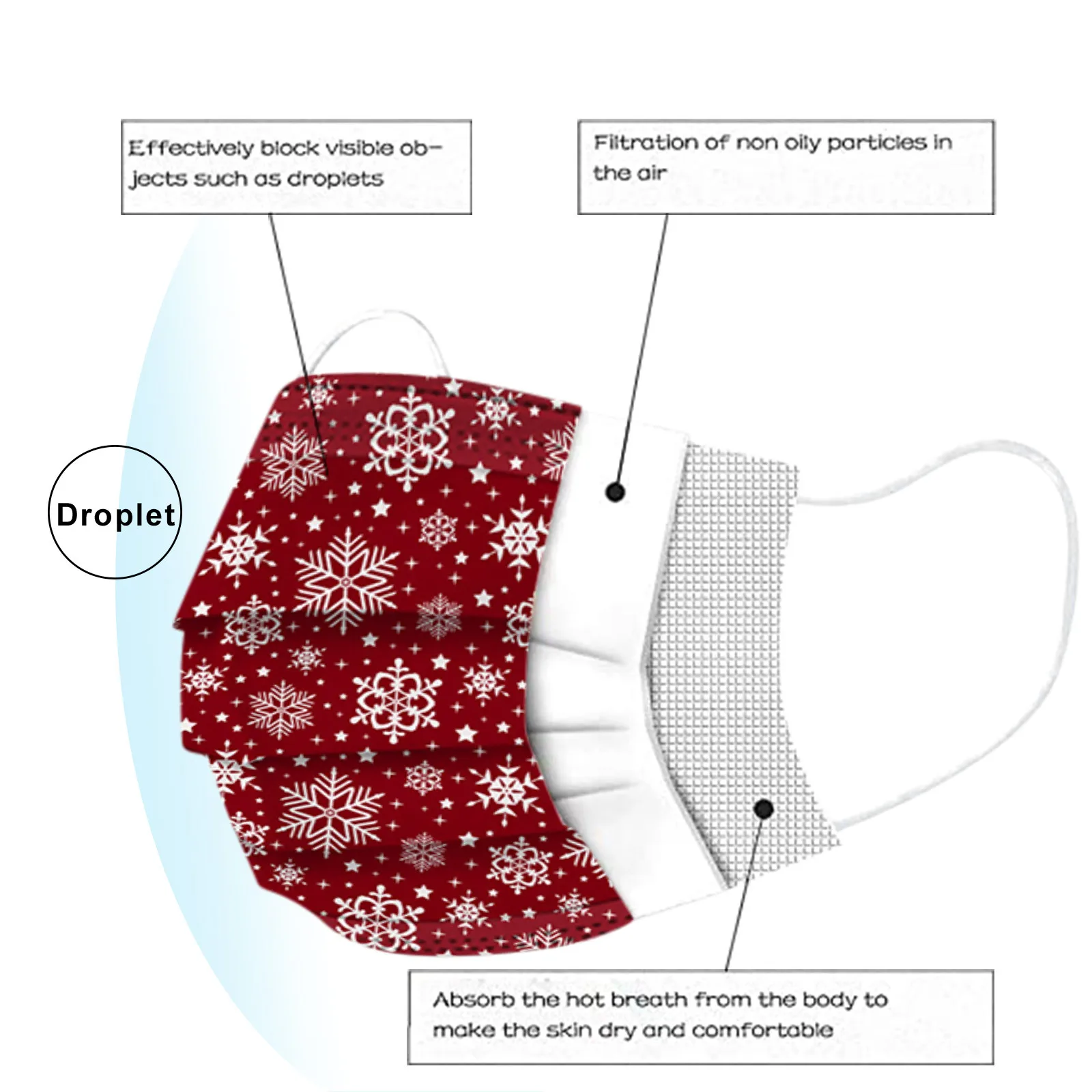 Маска одноразовая для взрослых 10 шт. Пылезащитная Праздничная Рождественская с - купить