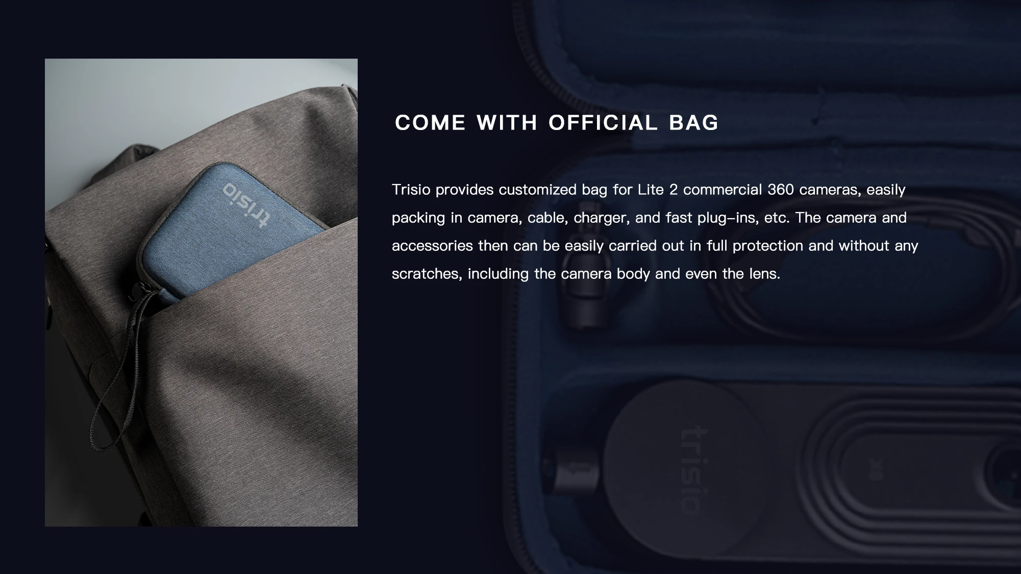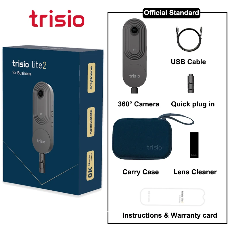 Trisio Lite 2-это портативная камера 360 для коммерческого использования, предлагающая профессиональную панорамную съемку даже для начинающих пользователей, и широко используемая в области ремонта и отделки, гидроэнергетики, Агентства по недвижимости, бизнес-презентаций, туристический Туризм и B & B отели и т. Д. Он отличается минималистичным дизайном, прост в использовании и автоматической съемкой. Когда вы просто нажимаете кнопку спуска затвора, корпус камеры будет вращаться с помощью точного мотора внутри, А изображения снимаются с помощью высококачественного объектива камеры в нескольких направлениях для создания высококачественной панорамы с разрешением 8K 32 мегапикселя. Камера поставляется с 8G памяти (около 7,1G доступно) и сохраняет непрерывную съемку около 200 минут, В то время как программное обеспечение сопряжено с саморазработанной системой полномерной адаптивной визуализации anySence, которая может производить высококачественные панорамы даже в условиях плохого освещения.