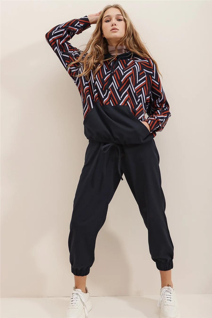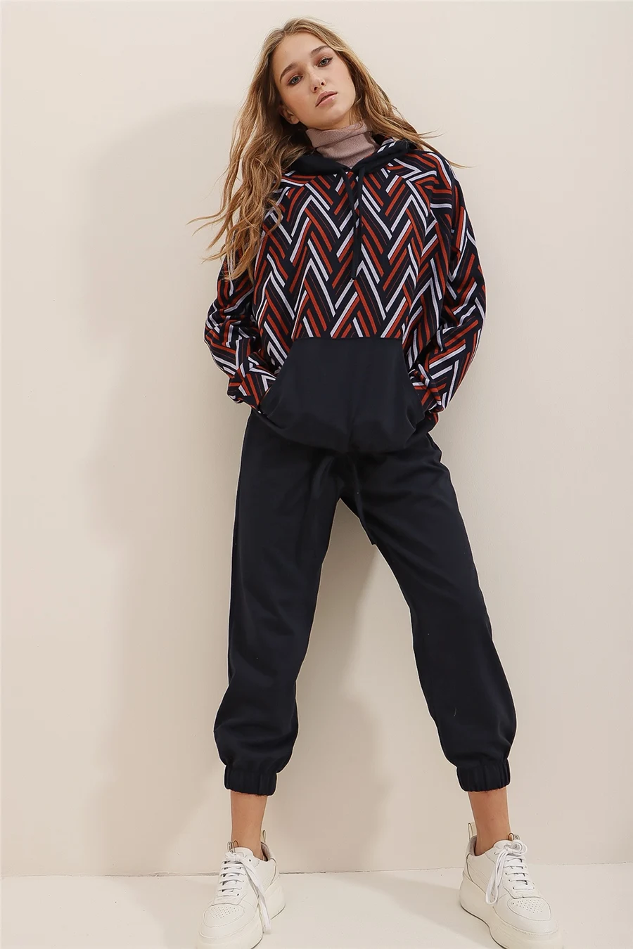 Спортивный костюм с капюшоном и карманом кенгуру темно-синий - купить