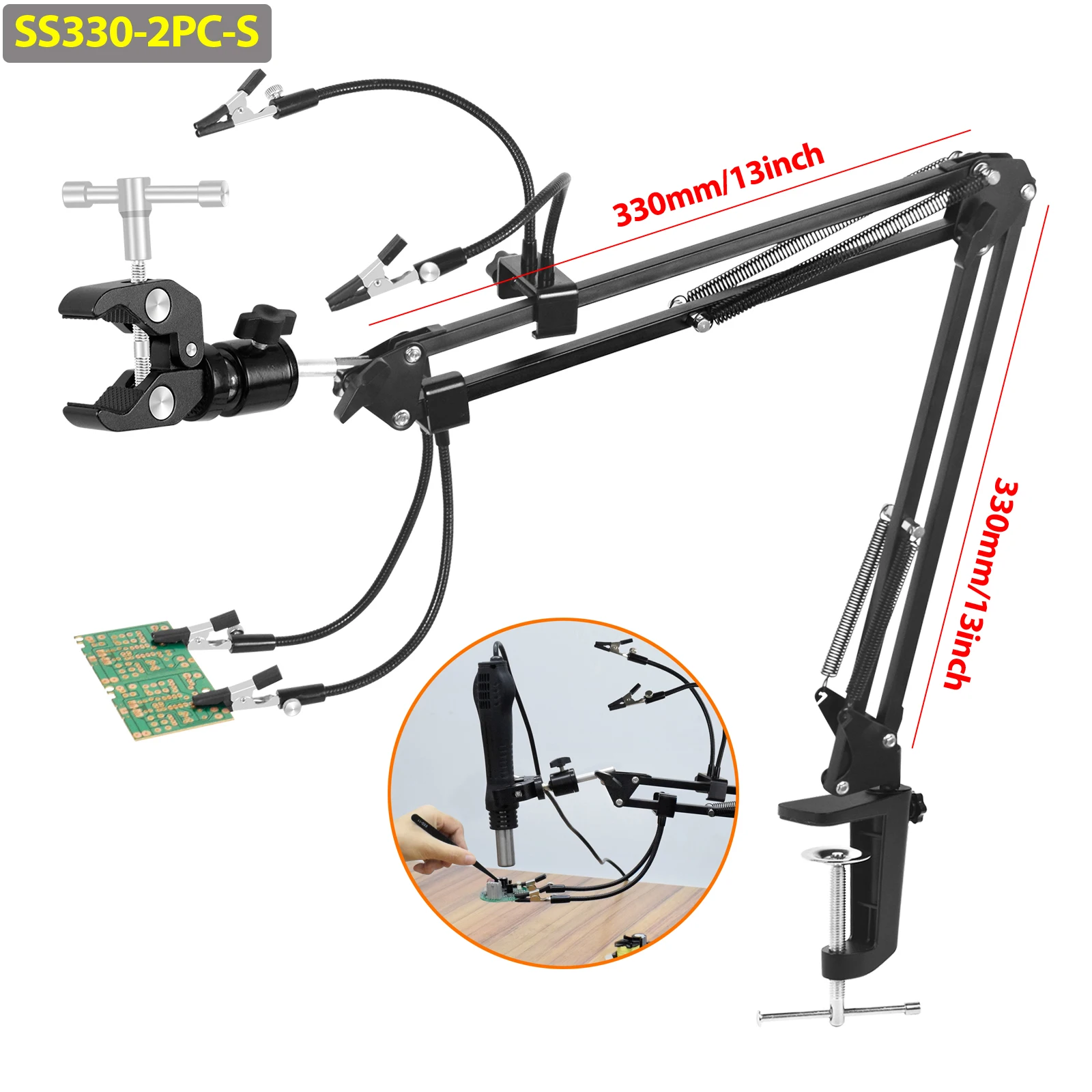 2. 0-55 мм/0-2.16 дюйма зажим для крепления печатной платы, кронштейн теплового пистолета, может хорошо зафиксировать печатную плату.