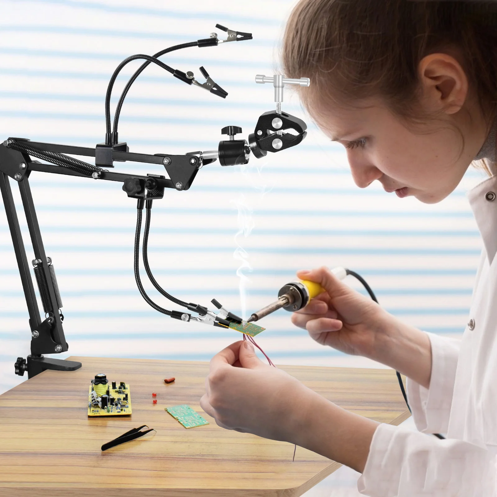 Паяльник NEWACALOX, регулируемый термопистолет для третьей руки, держатель для печатной платы, сварочный инструмент для ремонта рук, инструмент для демонтажаОтделения: