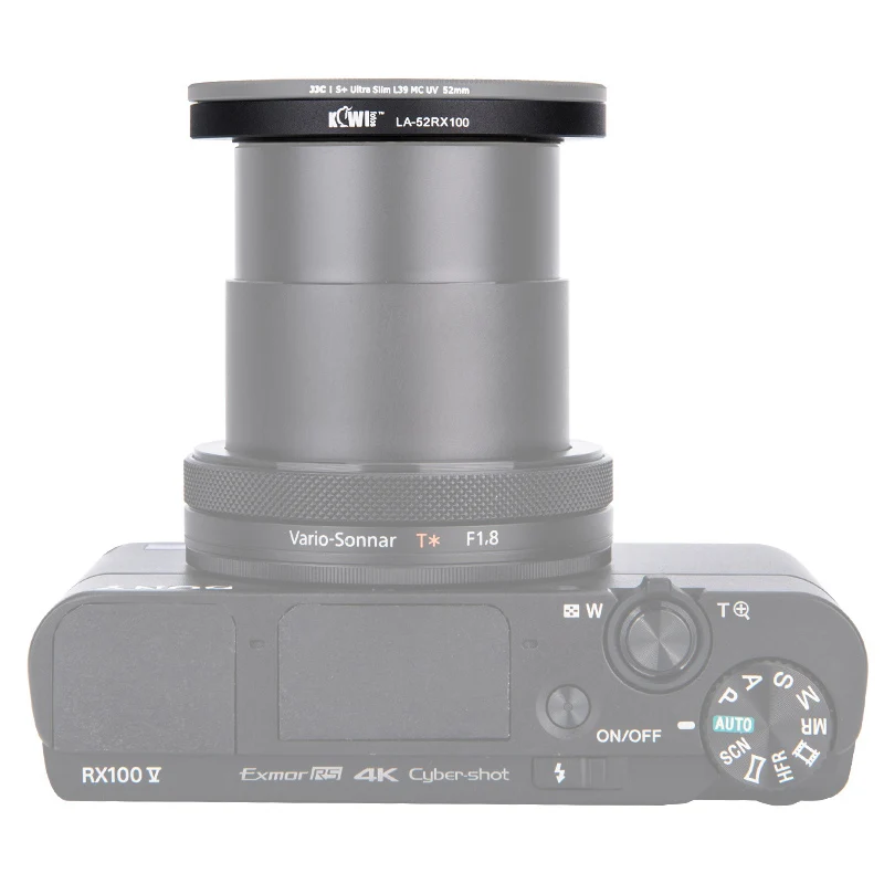 Кольцо-адаптер для объектива KIWIFOTOS LA-52RX100, изготовленное из черного анодированного алюминия, предназначено для Sony DSC-RX100/DSC-RX100M2/DSC-RX100M3/DSC-RX100M4, чтобы принять любой фильтр с резьбой 52 мм. Он крепится к камере с помощью двусторонней клейкой пленки, которая надежно удерживает, но доступна для безопасного удаления.