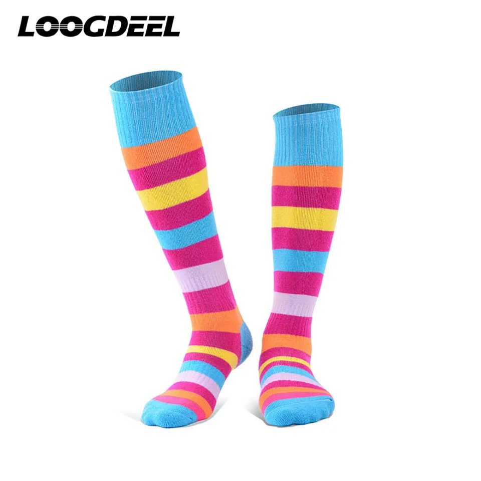 Loogdeel/спортивные длинные полосатые детские лыжные чулки для катания на роликах утолщенные махровые носки зимние носки для мальчиков и девочек