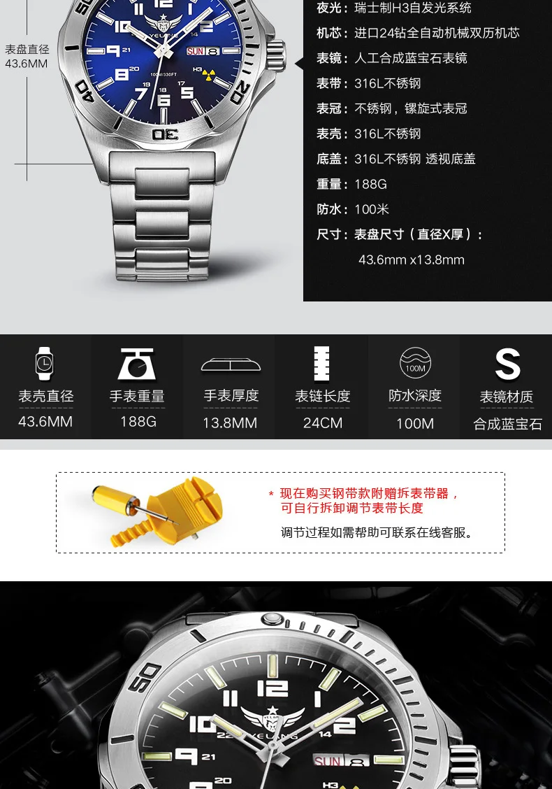 Отзывы о Мужские автоматические механические часы Yelang Tritium T100 японские TOP Move с сапфировым