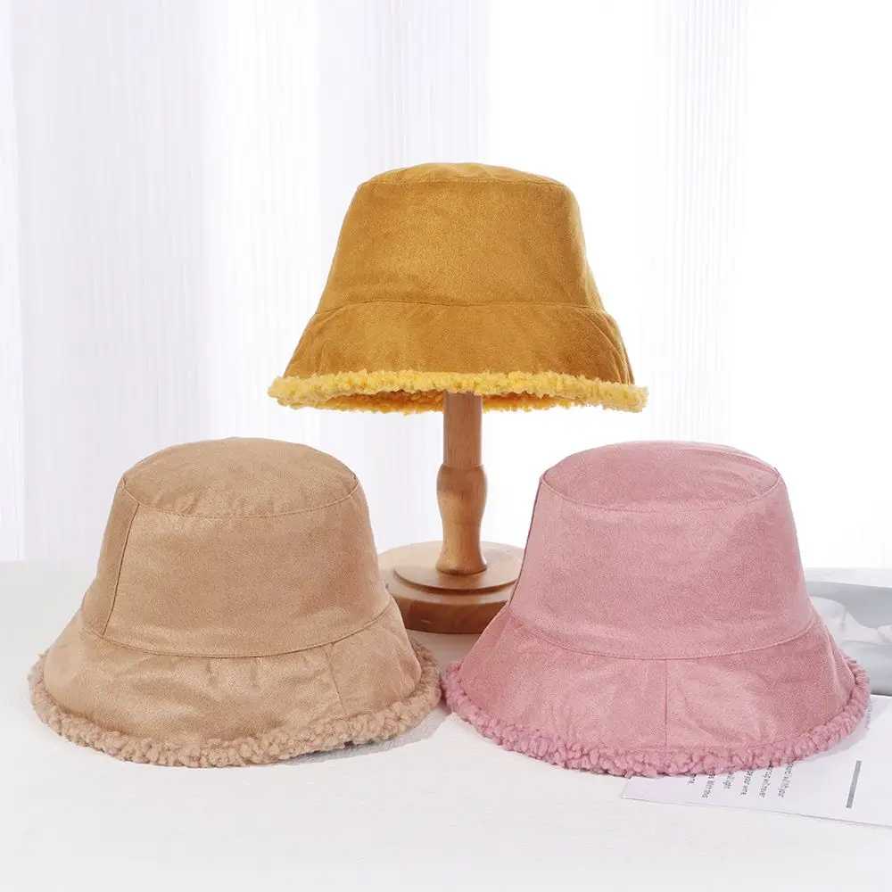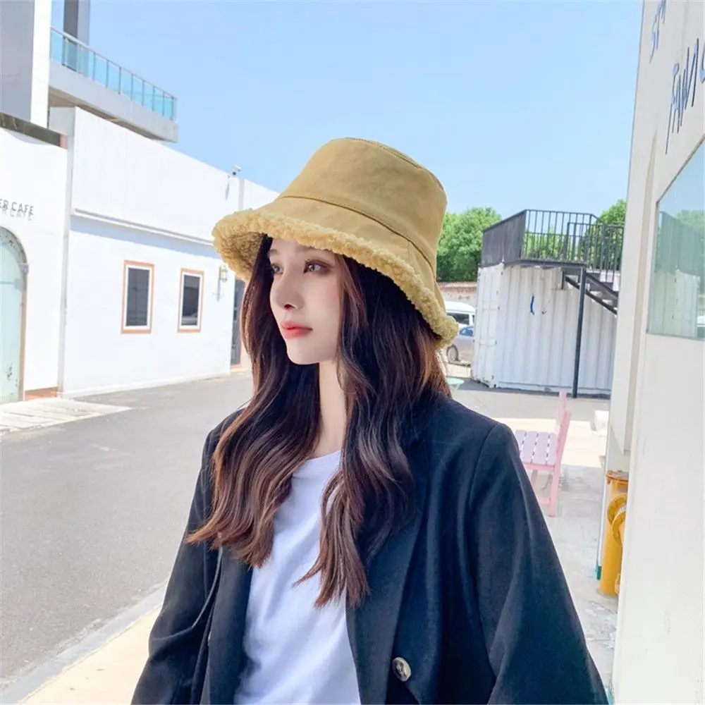 Купить Женская шляпа с воротником, мягкая, теплая, повседневная, рыбацкая шляпа, зимняя, панама, двухсторонняя, на открытом воздухе, модная, сладкая.