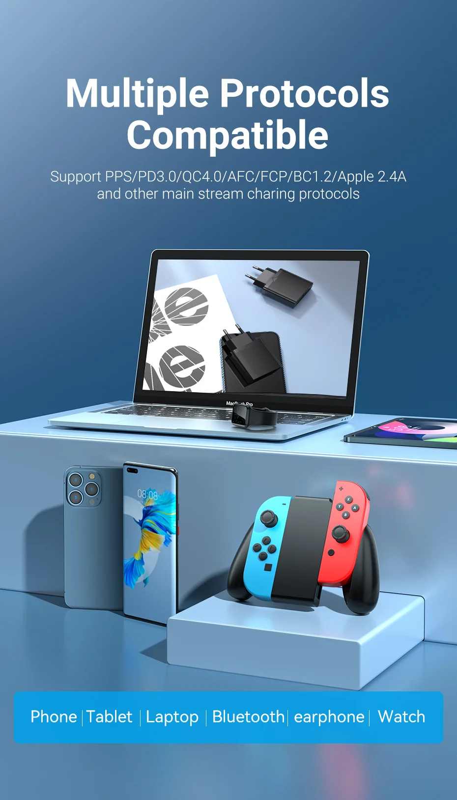 Supprot PPS/PD3.0/QC4.0 3,0/AFC/FCP/BC1.2/Apple 2.4A и другие протоколы зарядки основного потока