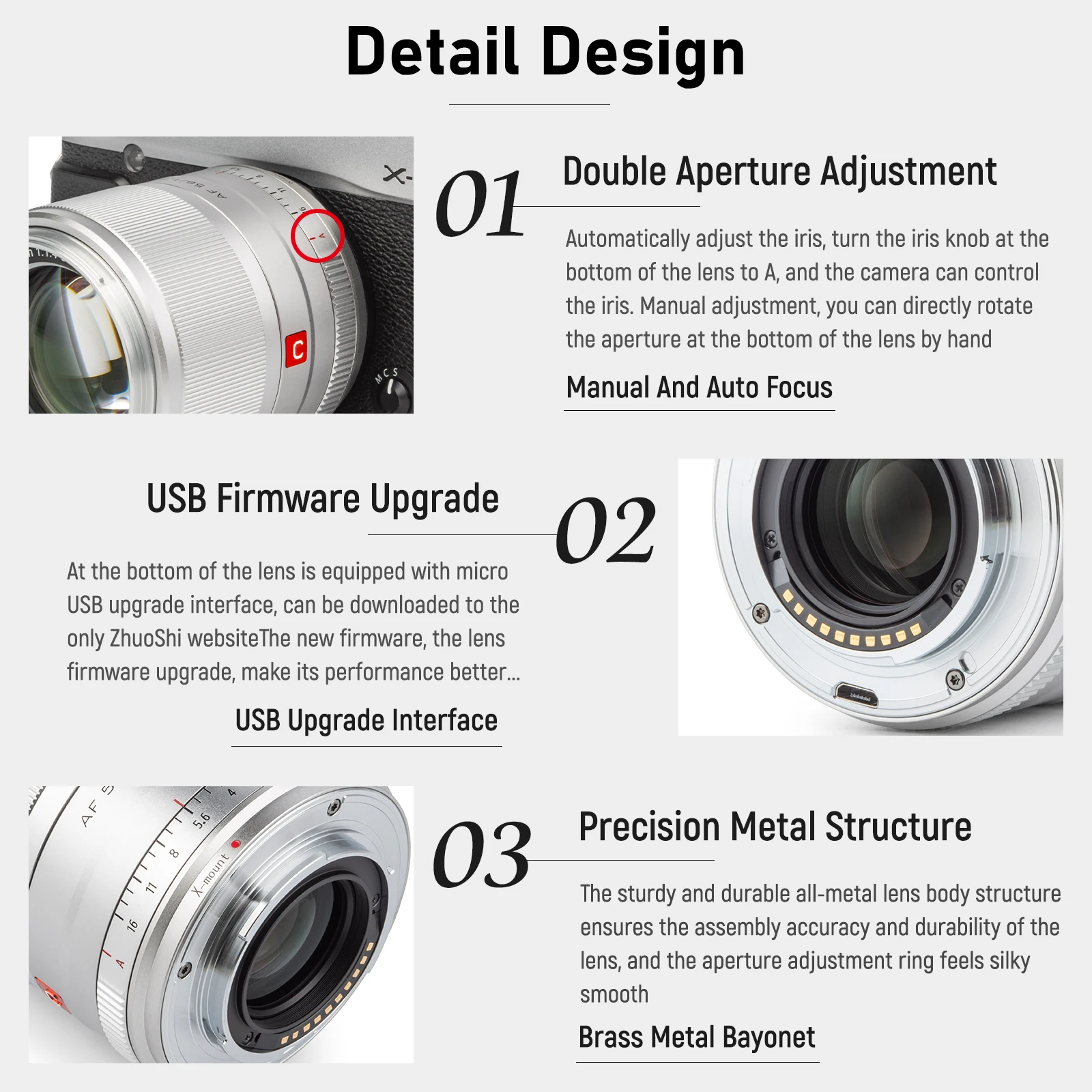 Объектив VILTROX AF 23 мм 33 мм 56 мм F1.4 XF Auto Focus prime-это объектив с большой диафрагмой, предназначенный для камеры Fuji X-mount.