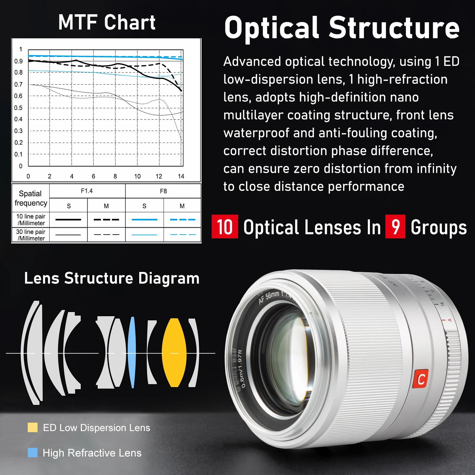 · 11 элементов в 10 группах, включая 2 ED линзы и 2 высокопреломляющих объектива.