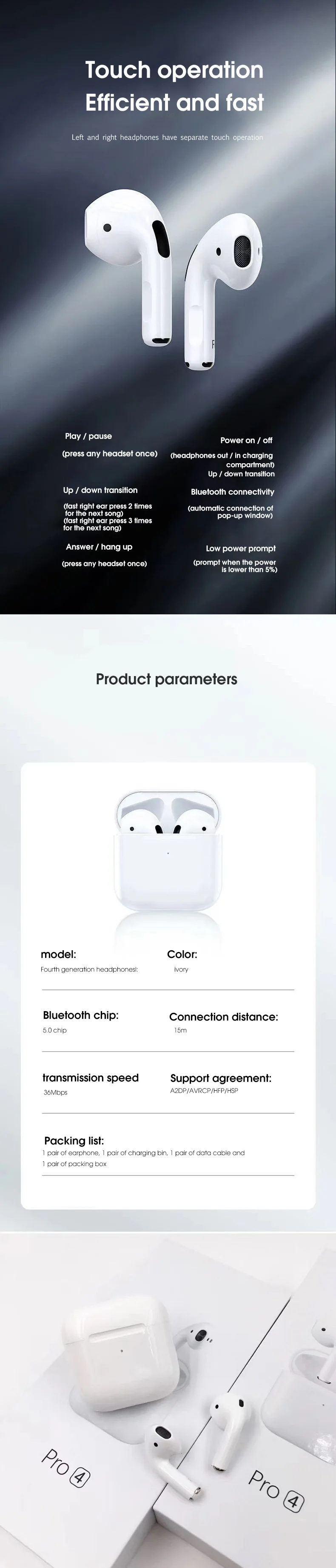 Отзывы о TWS-стереонаушники Pro4 с поддержкой Bluetooth для Redmi/Huawei/Xiaomi Электроника