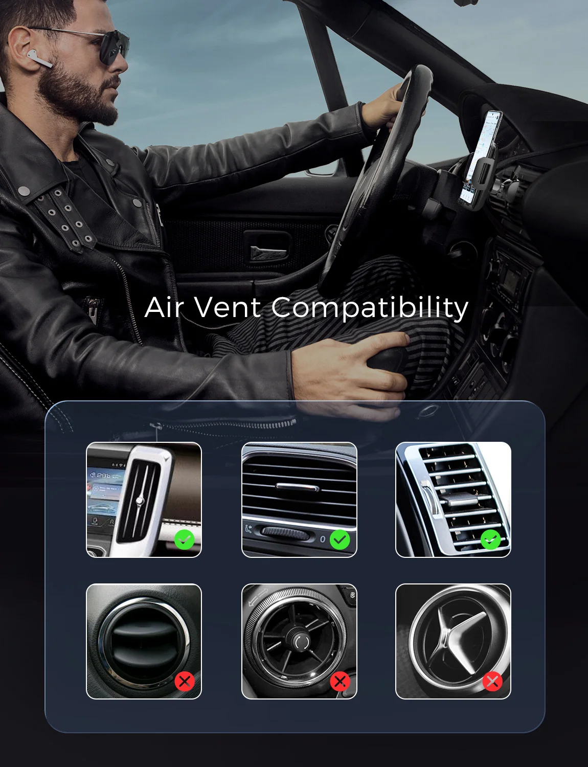 Mpow держатель телефона на вентиляции не подходит для неинтенсивных, дугообразных или оттягивающих вентиляционных отверстий.
