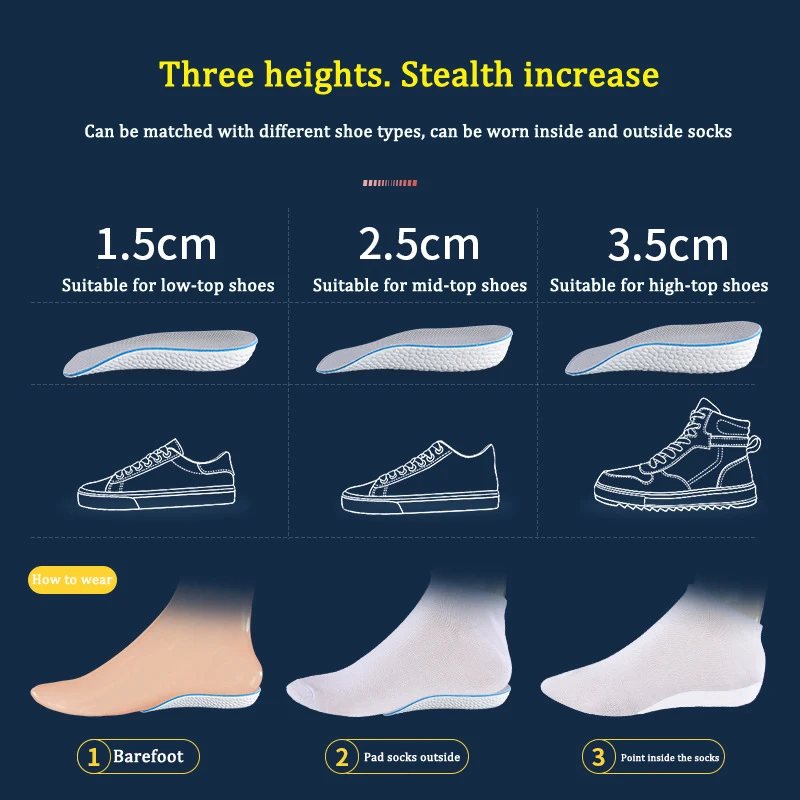 Стельки, увеличивающие рост светильник, мягкие эластичные стельки, дышащие Eva для мужчин и женщин, мужская обувь, подклады, увеличивающие рост