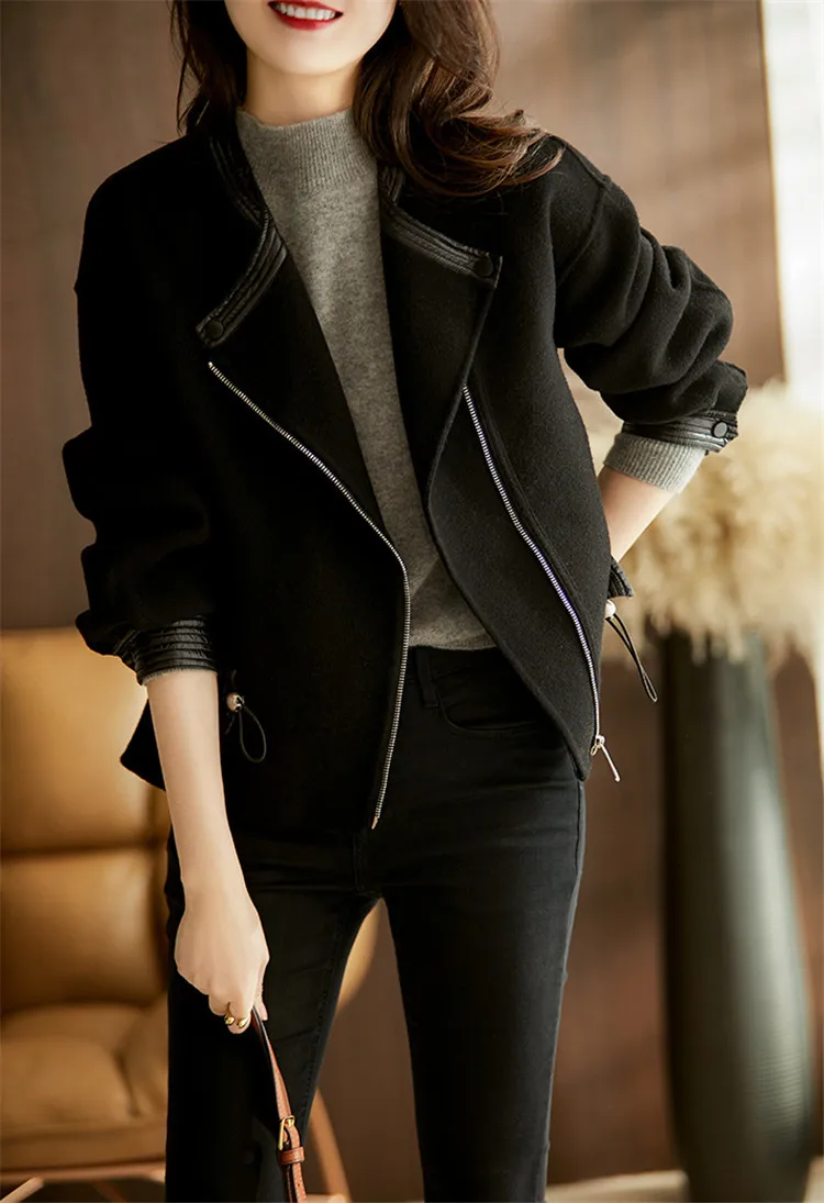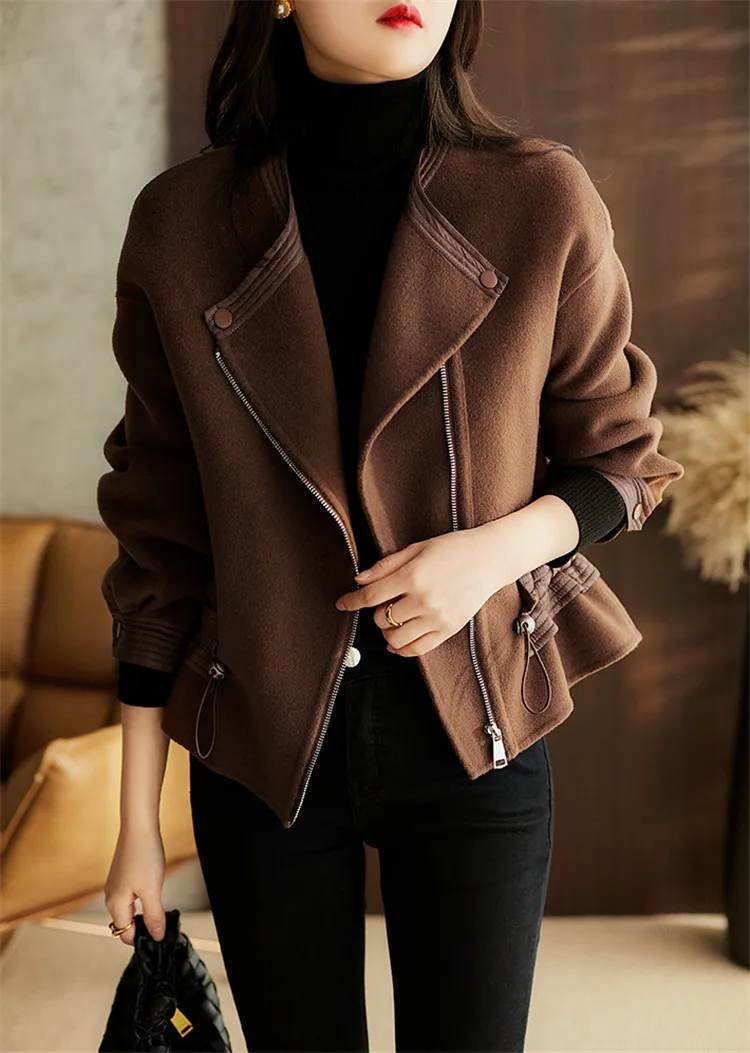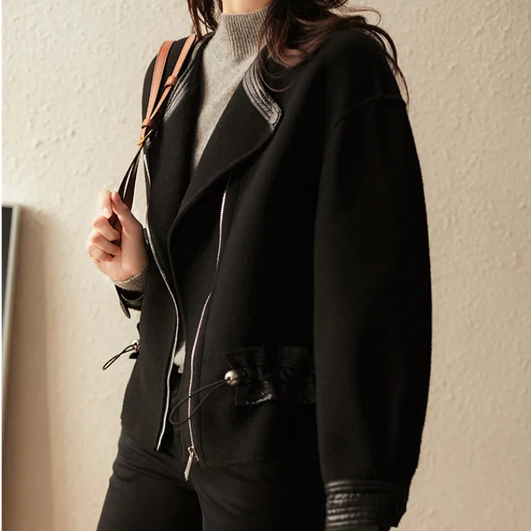 Пальто из натуральной шерсти в стиле пэтчворк, пальто из натуральной кожи для женщин, женские короткие пальто из овечьей кожи на шнурке, верхняя одежда на молнии, Осень-зима 2021