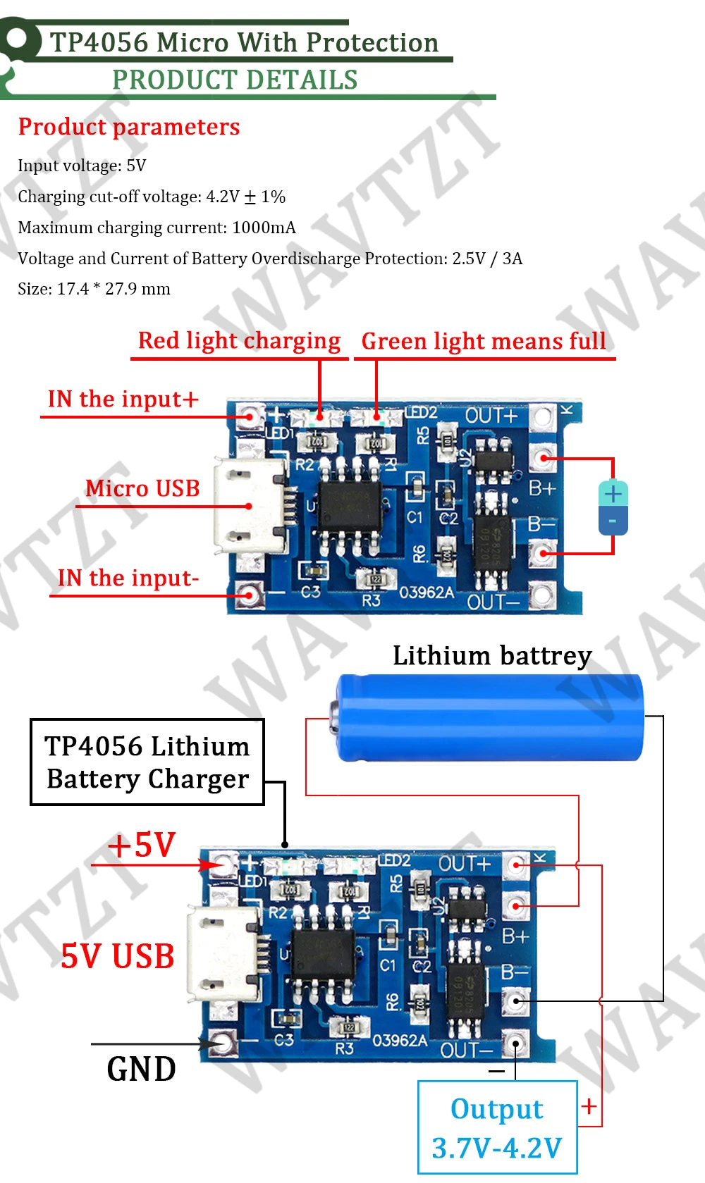 Отзывы о Micro USB 5V 1A 18650 TP4056 фотозарядная плата с защитой + MT3608 2А Электронные компоненты и