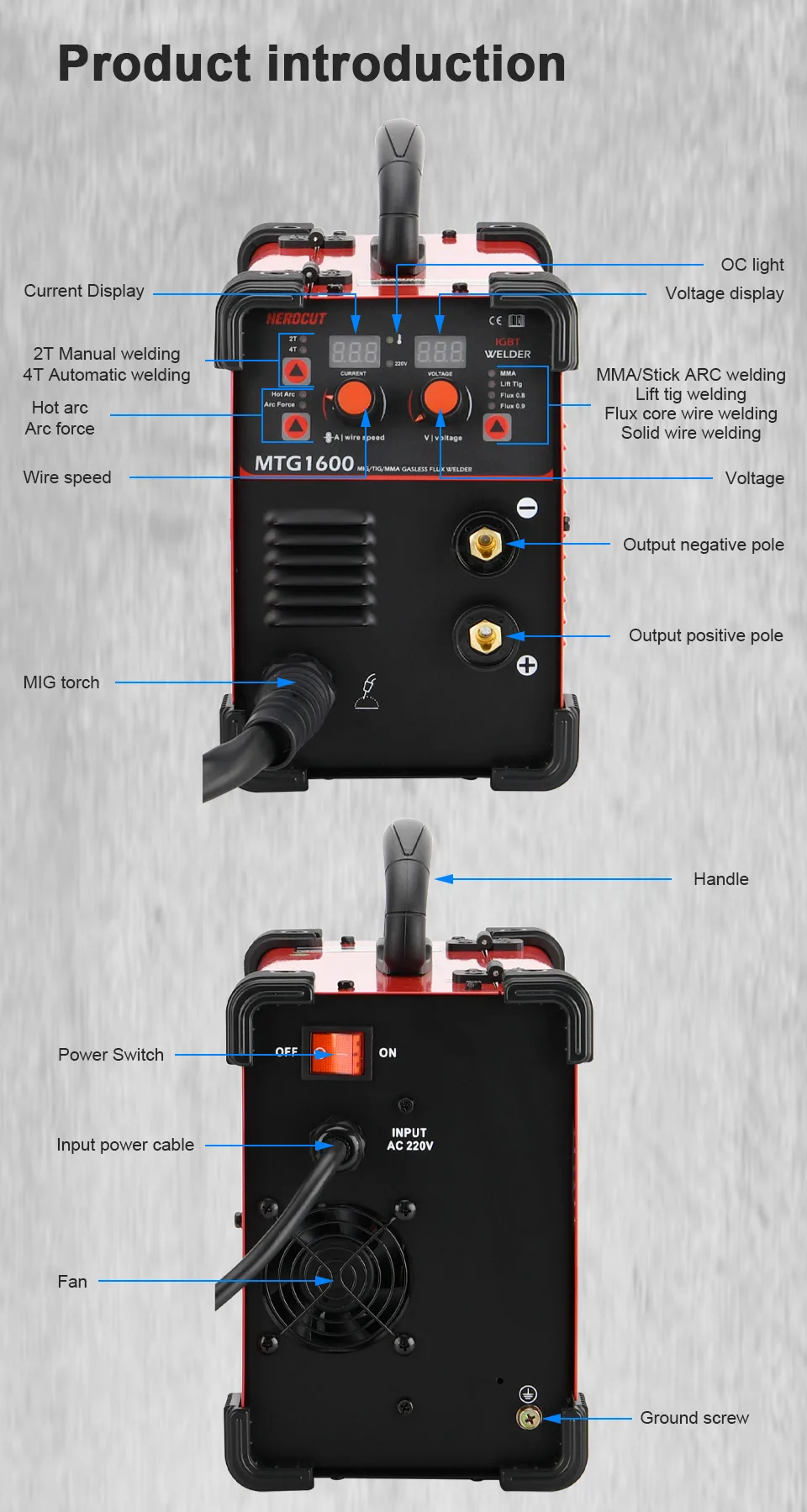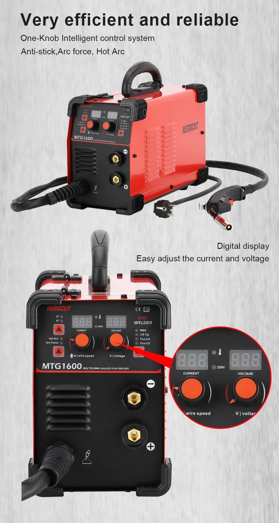 【Интеллектуальный контроллер 】 этот Mig сварщик разработан базовым на одной ручке Интеллектуальный contro l system.ca n Автоматическая компенсация и регулировка тока и напряжения. С 10 уровней Точная подгонка от-5V to + 5V, контроль миг подачи проволоки скорость и силу тока.
