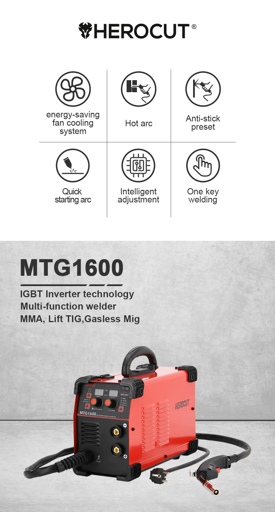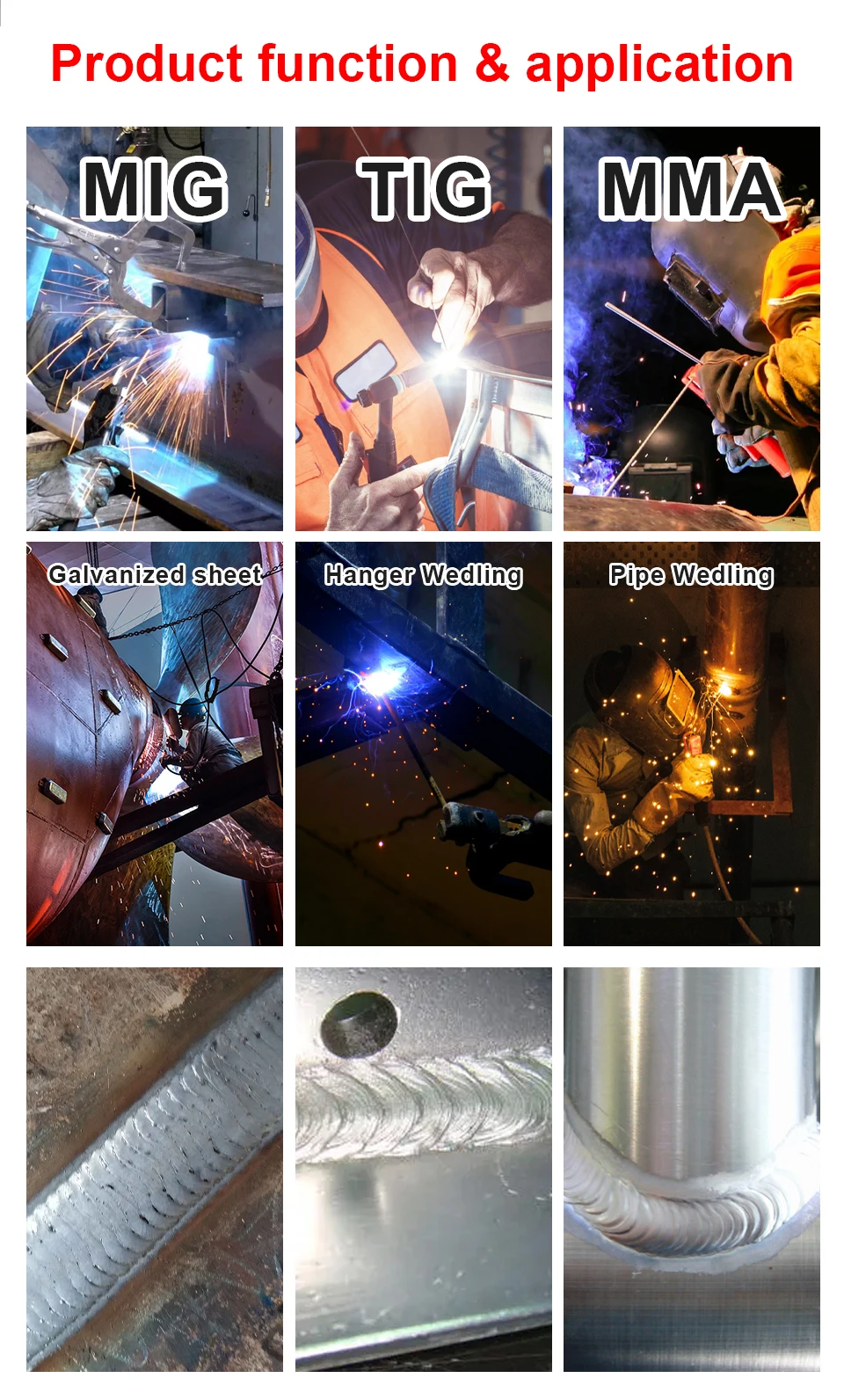 【 Многофункциональный】 3in1сварочный аппарат, подходит для MMA, Lift TIG, flux MIG, для сварки нержавеющей стали, мягкой стали, алюминия и других металлических материалов.