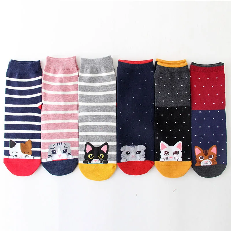 Отзывы о Женские хлопковые носки в полоску с принтом кота 1 шт