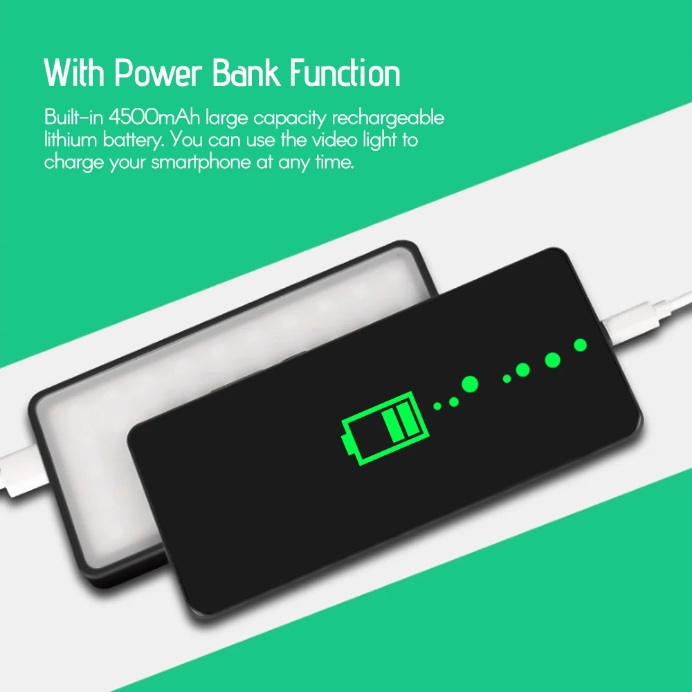 Функция внешнего аккумулятора:Встроенный аккумулятор емкостью 4500 мАч, светильник может использоваться в качестве внешнего аккумулятора для зарядки вашего телефона.