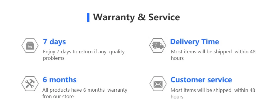 2)Упаковка:Мы отправляем все наши товары без оригинальных коробок. Если вам нужна коробка, пожалуйста, свяжитесь с нами.