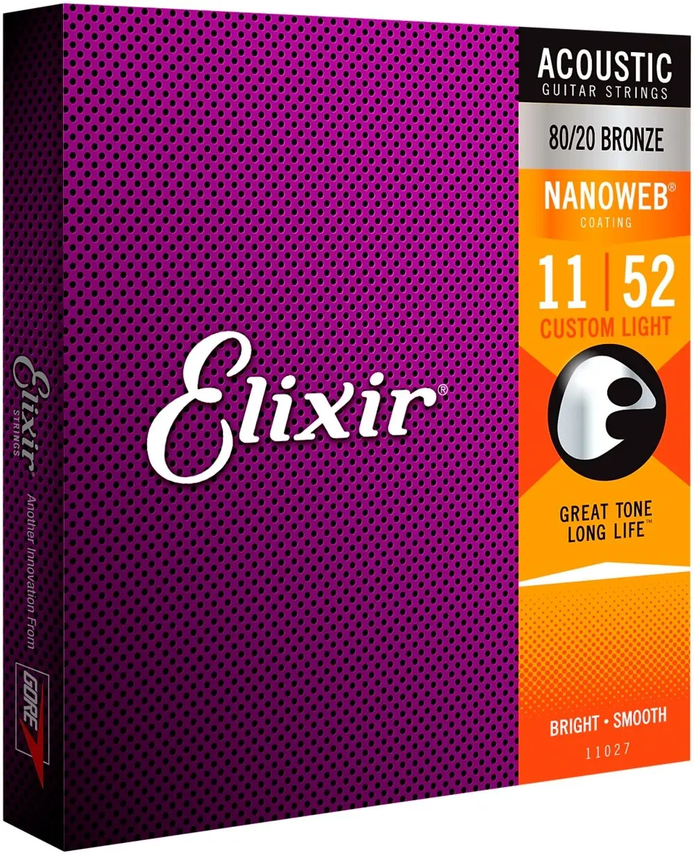 Elixir Nanoweb 11027 Coating 80/20 бронзовые для акустической Струны гитары Custom светильник 011-052 - - купить