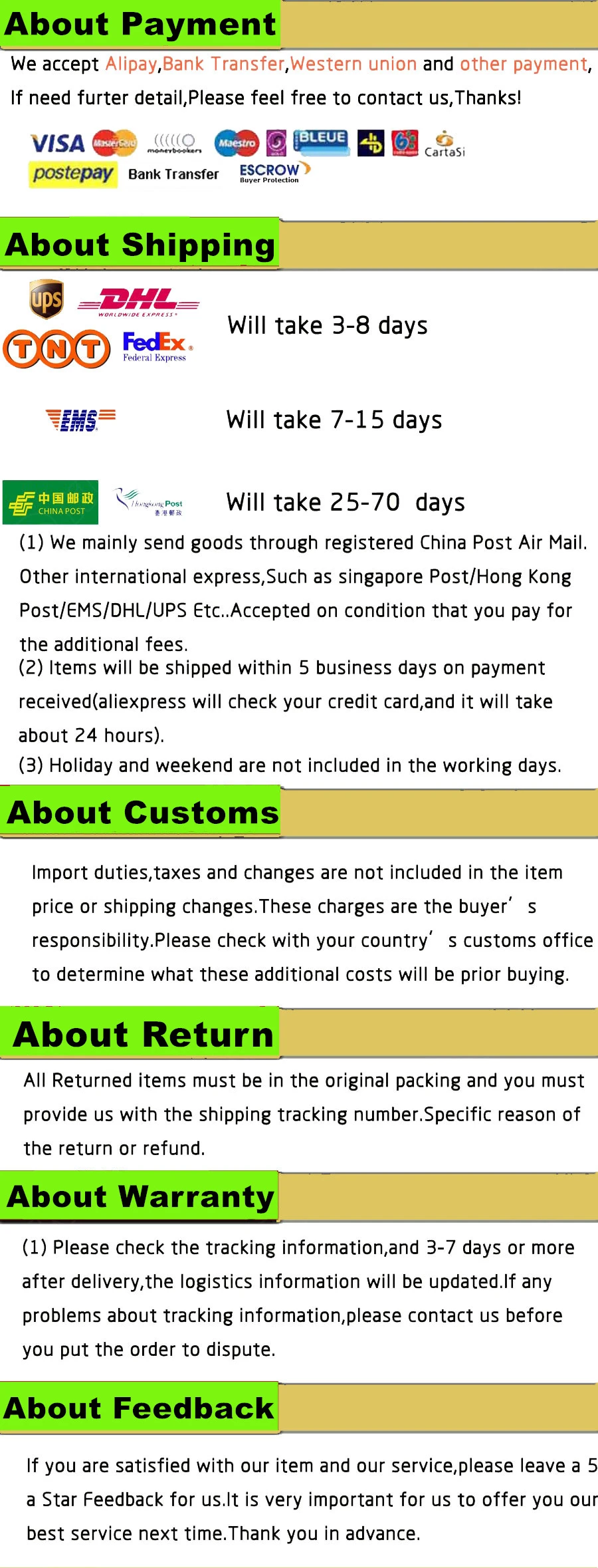 2. Ваше удовлетворение-наша главная забота. Пожалуйста, свяжитесь с нами, чтобы лучше решить любую проблему, прежде чем оставлять нейтральные или негативные отзывы.