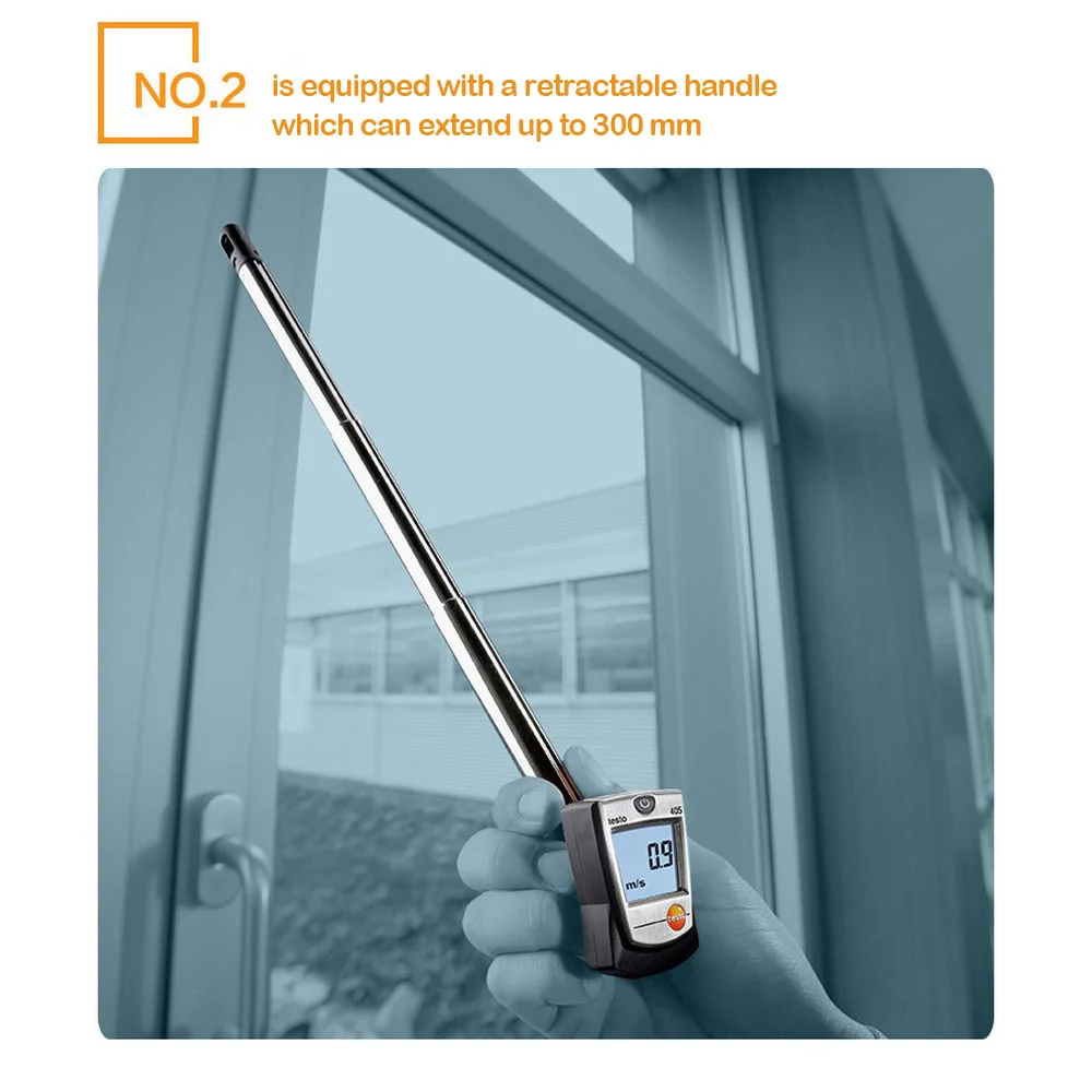 2. Testo 405-v1-идеальный выбор для измерения скорости воздуха в помещении. Низкие измерения скорости ветра (например, негерметичные окна) могут точно определить местоположение и обеспечить высокоточные измерения.