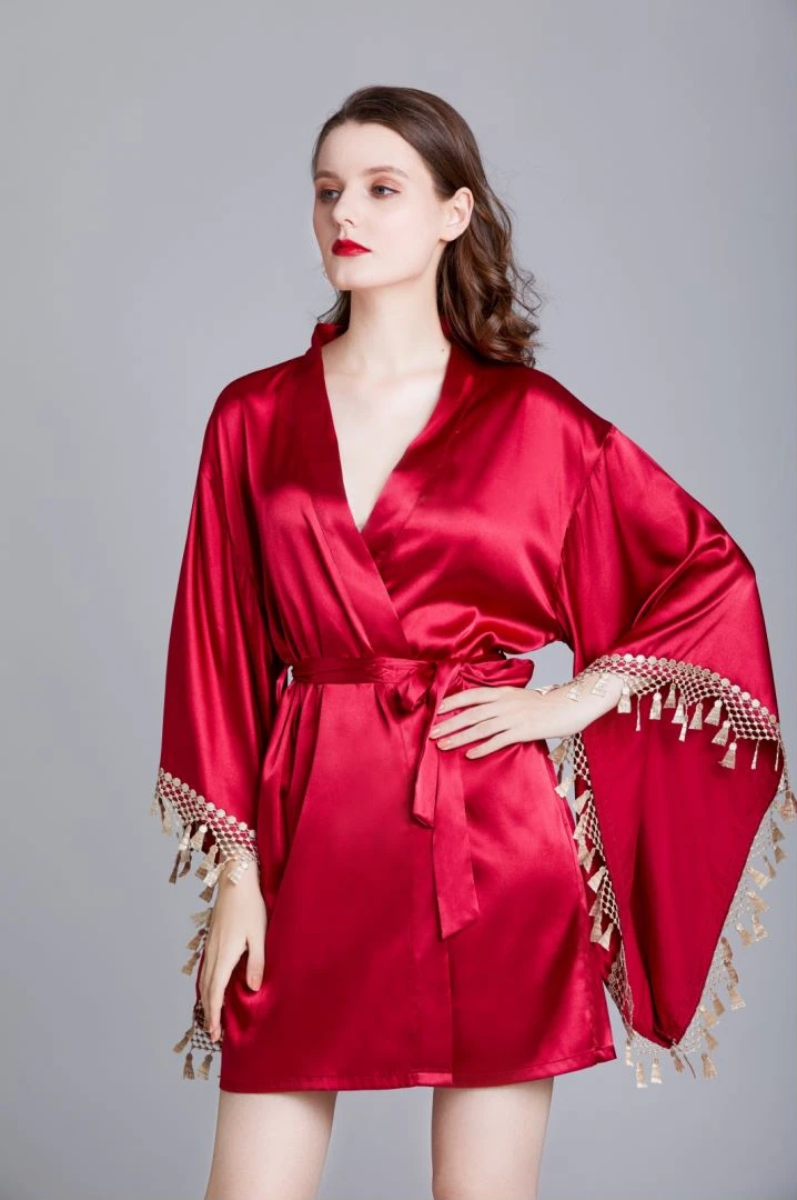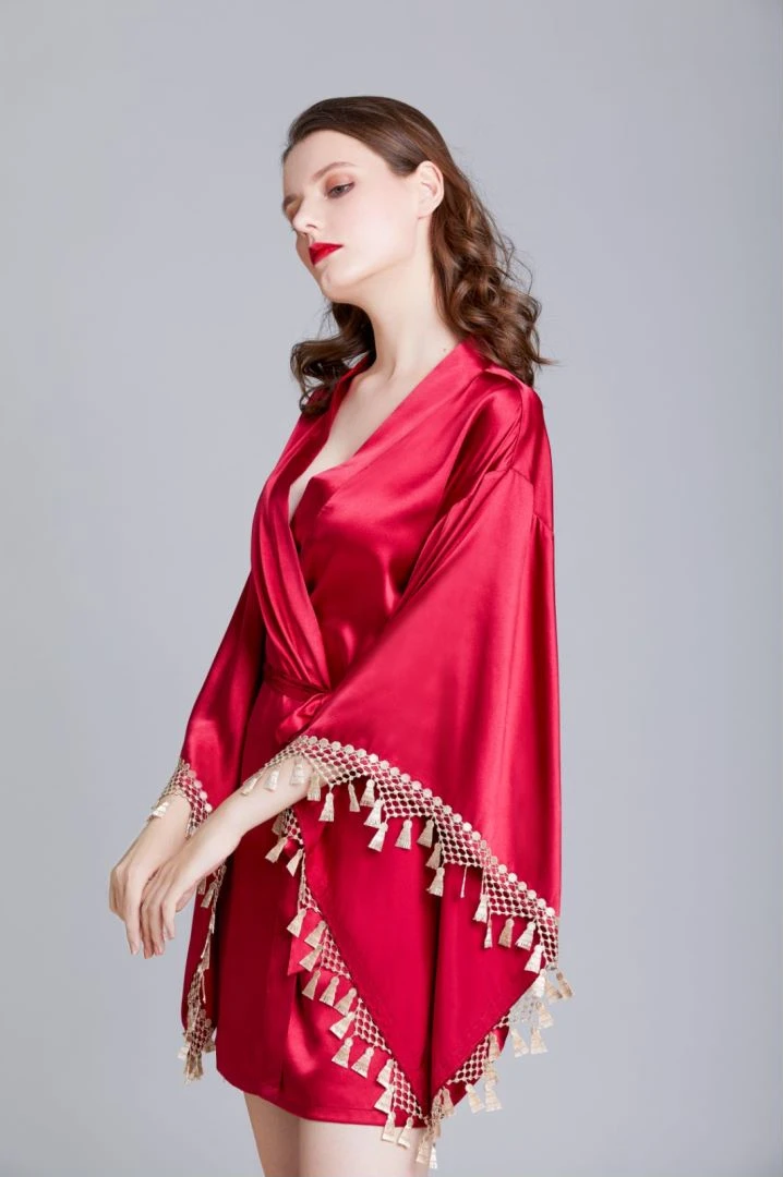 ОписаниеВинтажное бордовое китайское свадебное платье для невесты, атласное ночное белье, женская ночная рубашка, сексуальная ночная рубашка, Дамское кимоно, банный халат, платье, Неглиже