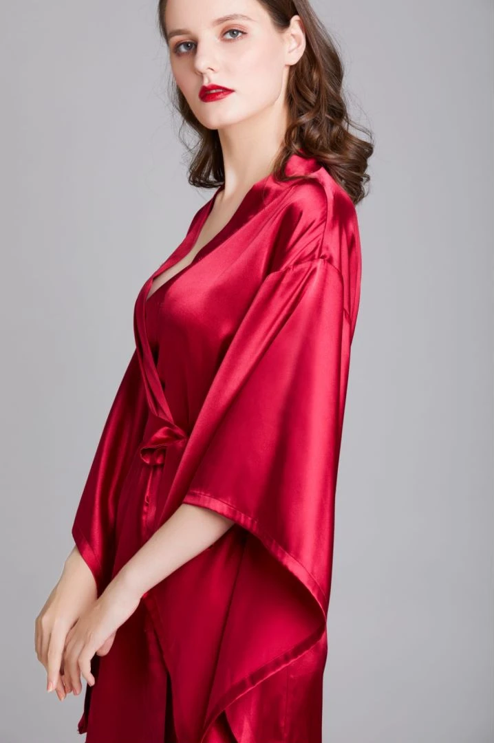 Купить Винтажный бордовый китайский халат для невесты свадебная атласная одежда сна