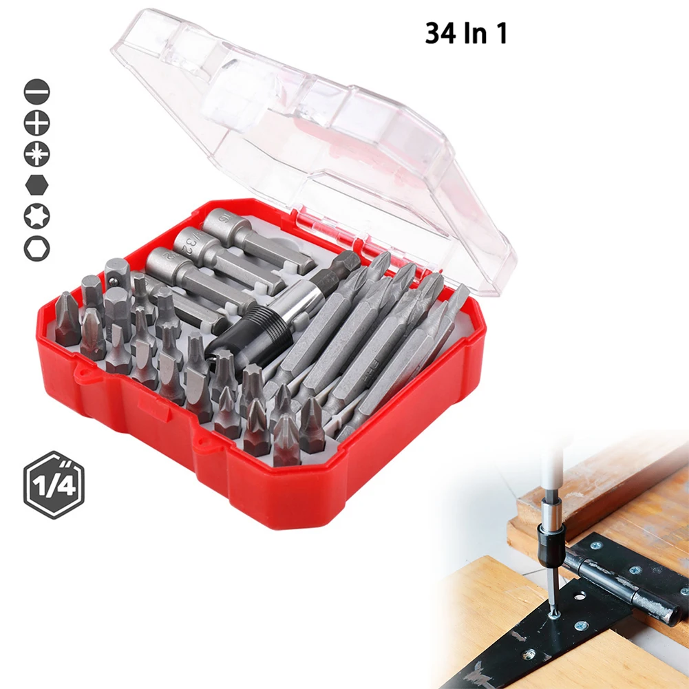 34Pcs/Set Hi-Spec Screwdriver Bits Set Magnetic 25mm 50mm Long Bit With Adapter Extension In Case Инструменты - купить