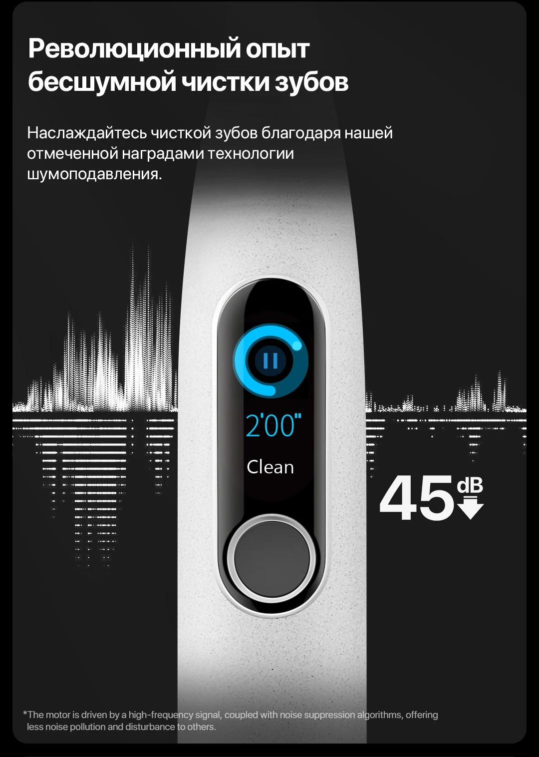 Наслаждайтесь успокаивающим эффектом чистки с помощью нашей отмеченной наградами технологии снижения уровня шума.
