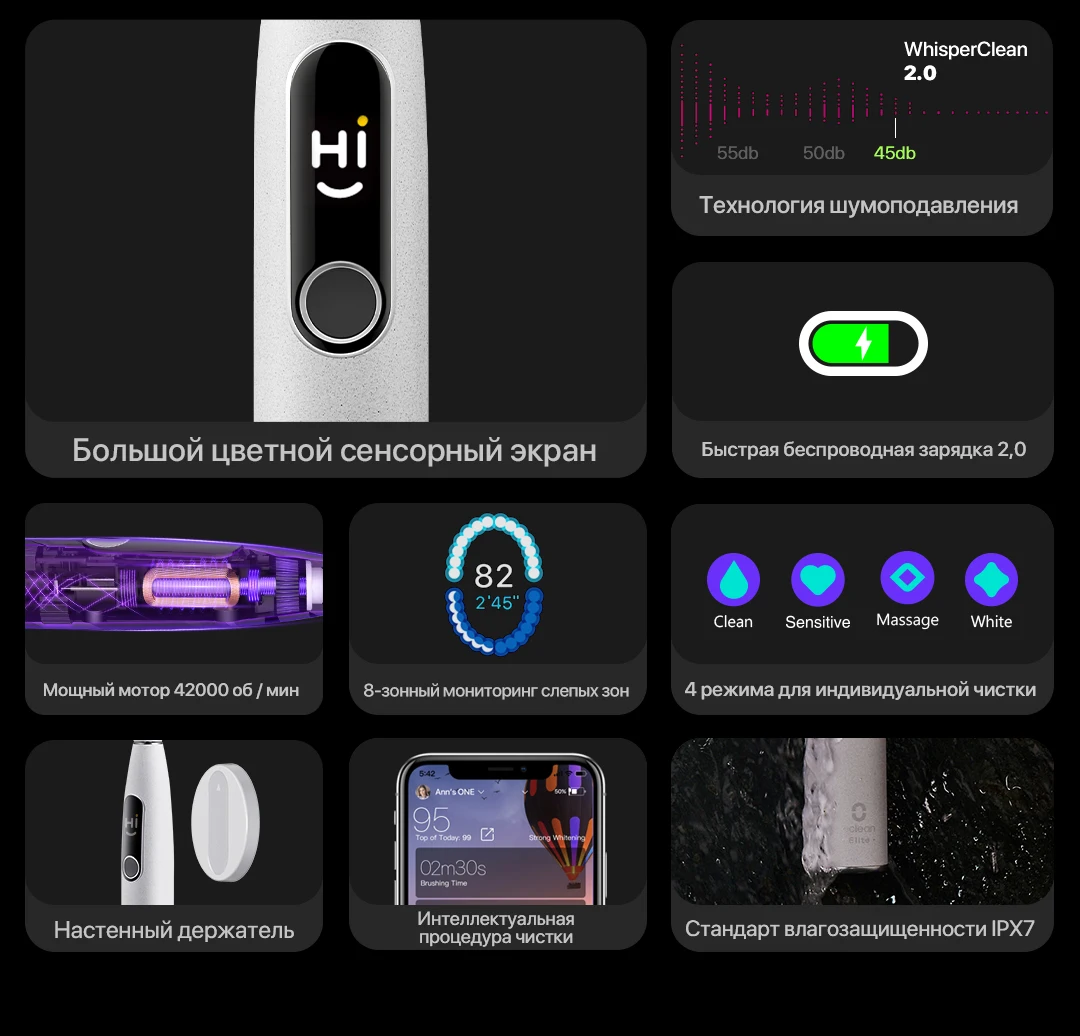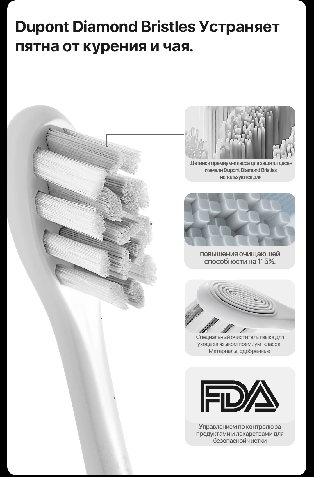• Интеллектуальное касание, позволяет настроить ваш план чистки зубной щетки и проверить информацию о продукте для зубной щетки