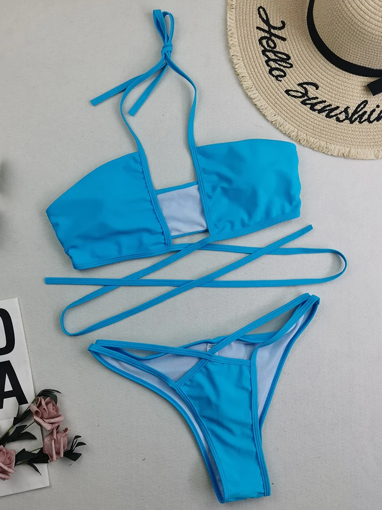 Отзывы о 2022 сексуальное бикини с лямкой на шее открытая одежда для плавания женский