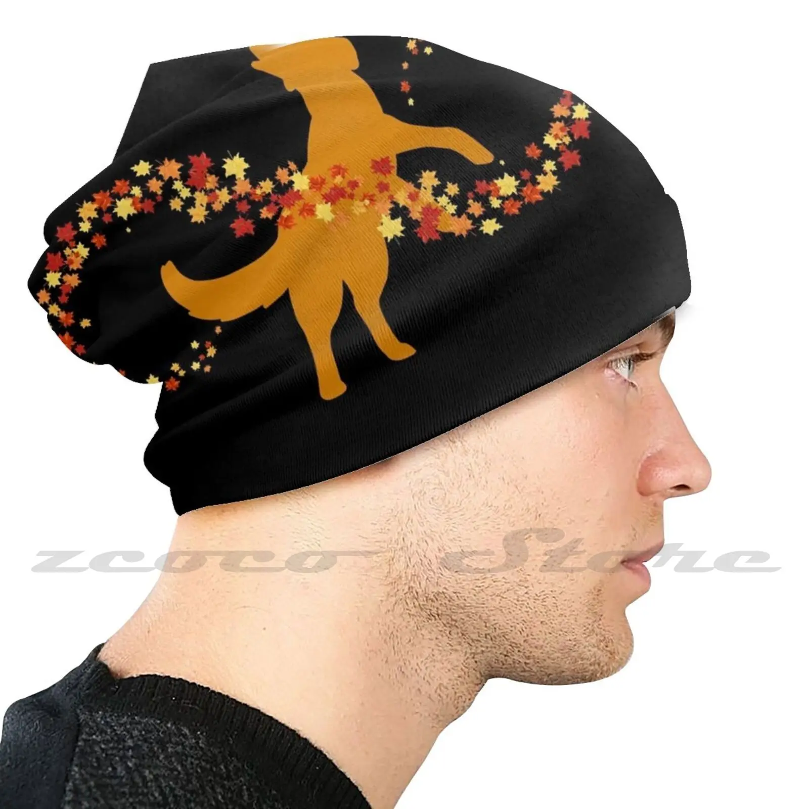 Осенний Силуэт Собаки оранжевая шапка-пуловер сделай сам вязаная шапка яркая - купить