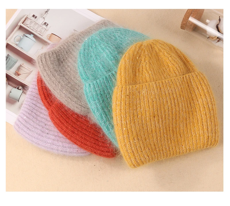 Купить Лидер продаж пушистая Ангорская шапка из кроличьего меха с блестками