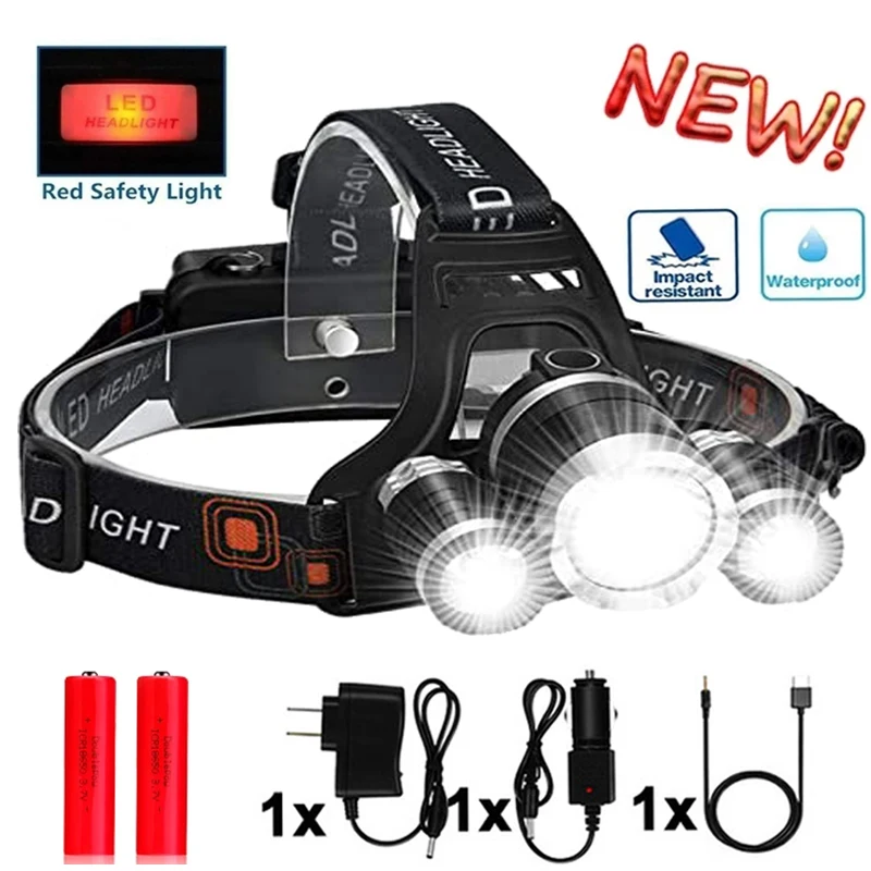 Самый яркий светодиодный налобный фонарь для рыбалки, охотничий Многофункциональный тактический фонарь, налобный фонарь, автомобильное настенное зарядное устройство для кемпинга