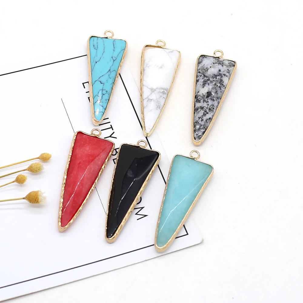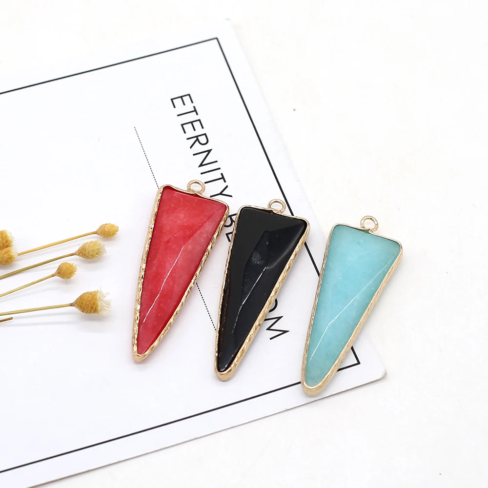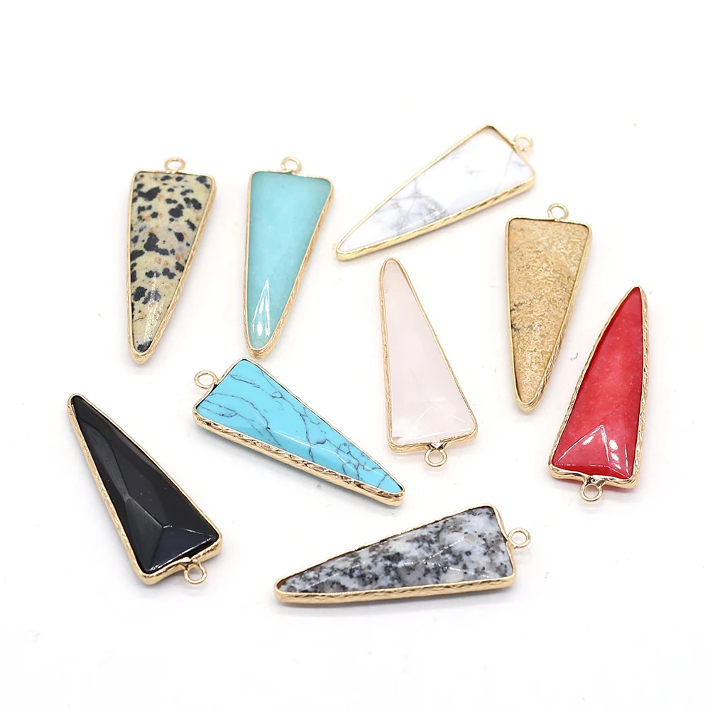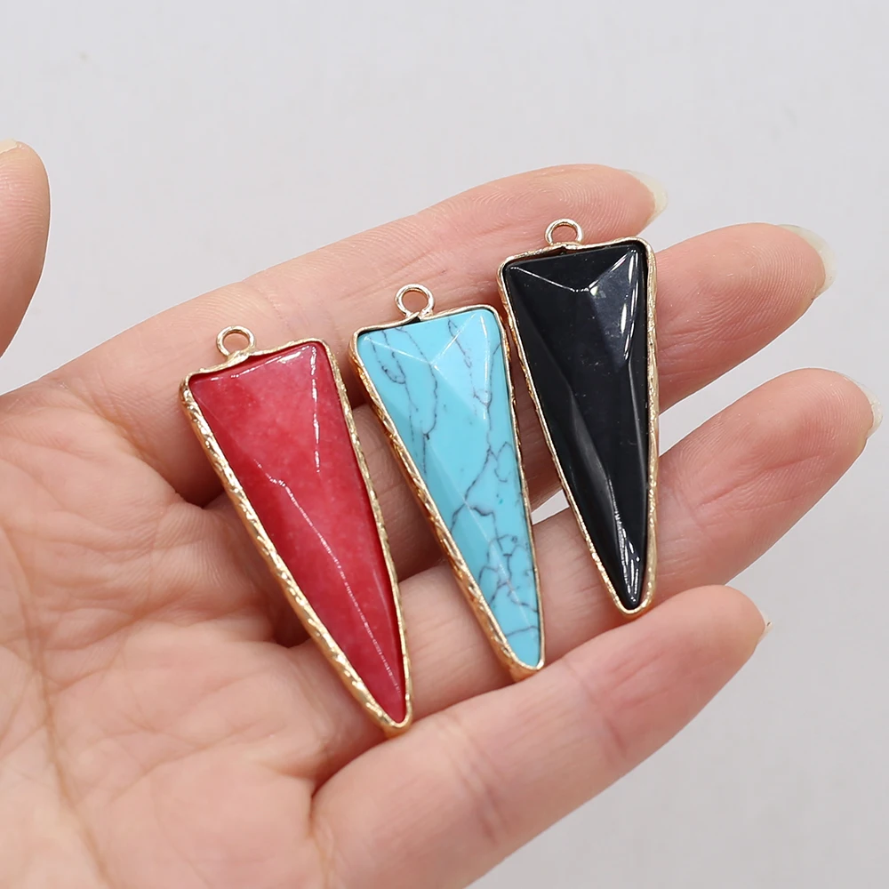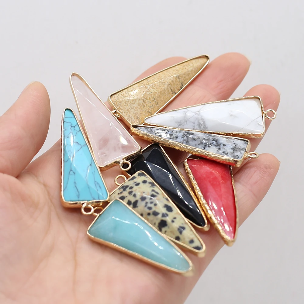 2 шт., натуральный треугольник, подвески, Радужный камень, кулон для женщин, ювелирное изделие, DIY ожерелье, аксессуары, размер 16x46мм