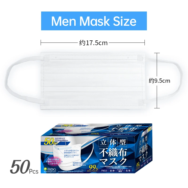 ISDG 50 шт белая мужская маска 3 слоя одноразовая Защитная для лица 17 5*9 5 см Ткань - купить