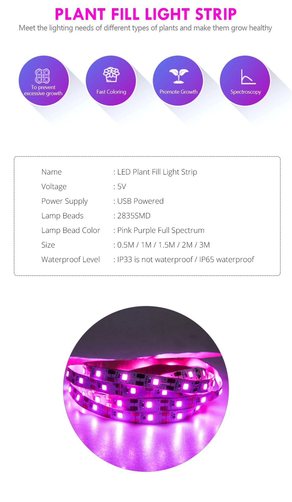 Купить Фитолампа для растений полного спектра USB светильник 5 В 0 5-3 м 2835 SMD фитолента