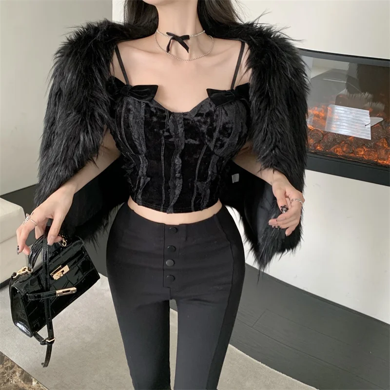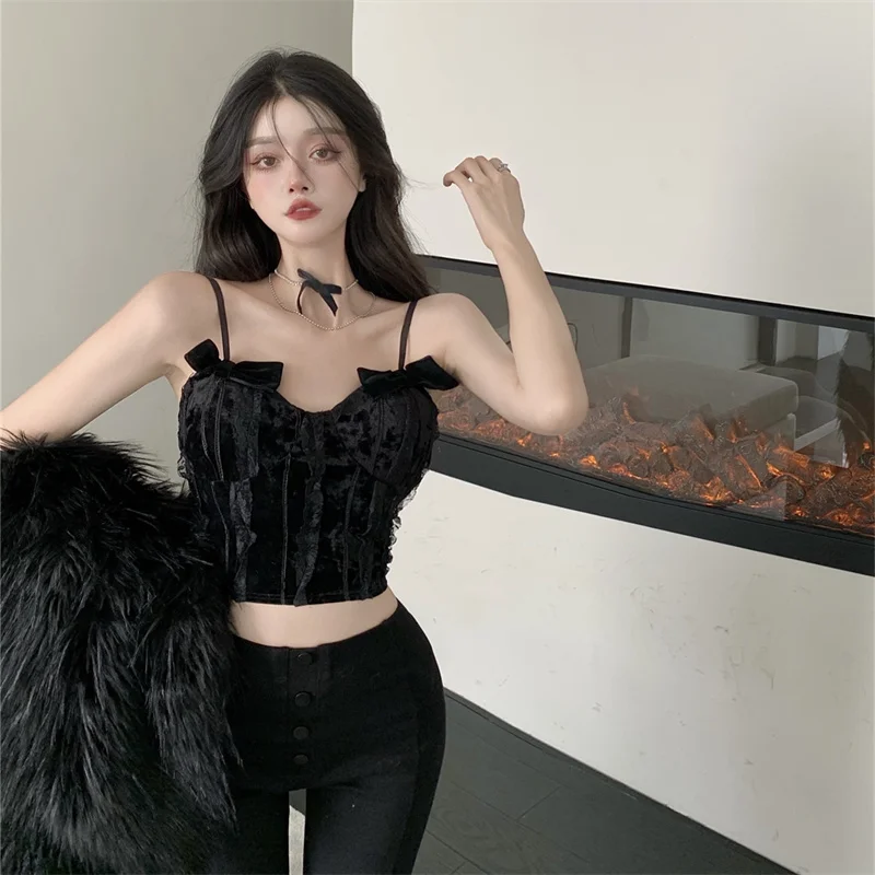 Купить Бархатный жилет на бретелях Женская осенне-зимняя черная французская одежда