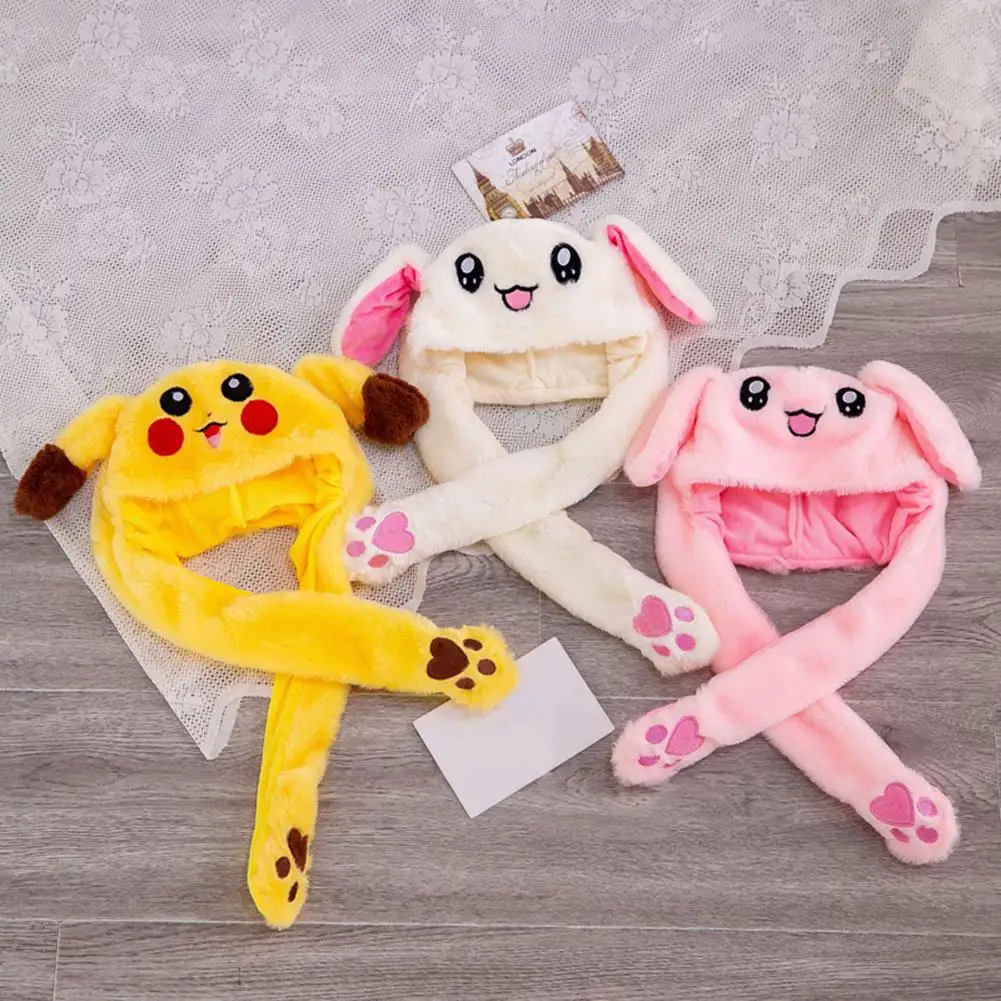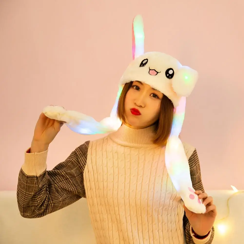 Купить Плюшевая шапка зимняя светящаяся с движущимися ушками кролика милая мультяшная
