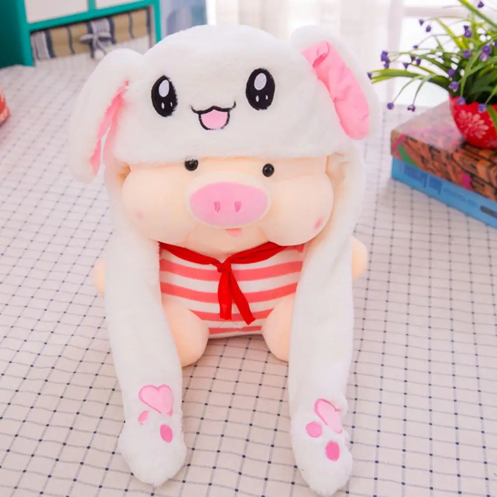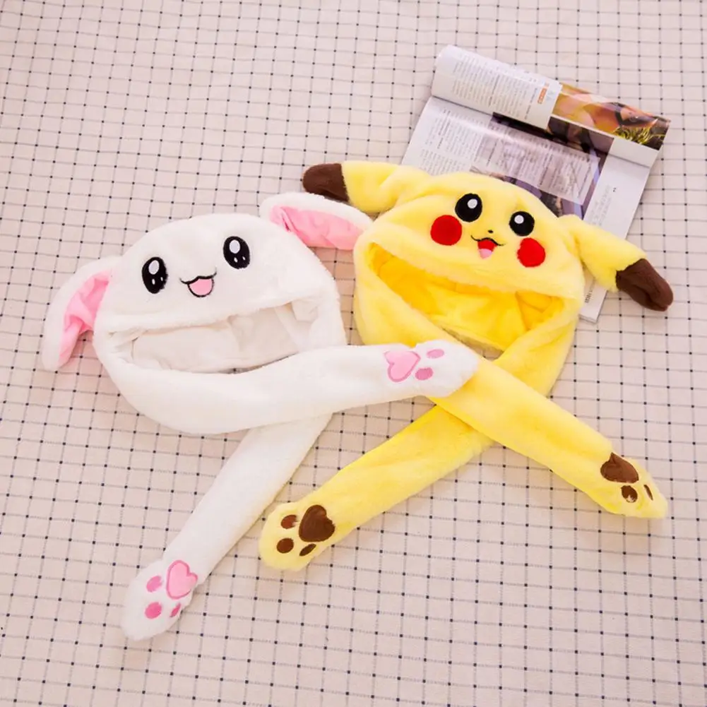 Плюшевая шапка зимняя светящаяся с движущимися ушками кролика милая мультяшная - купить