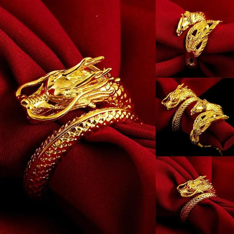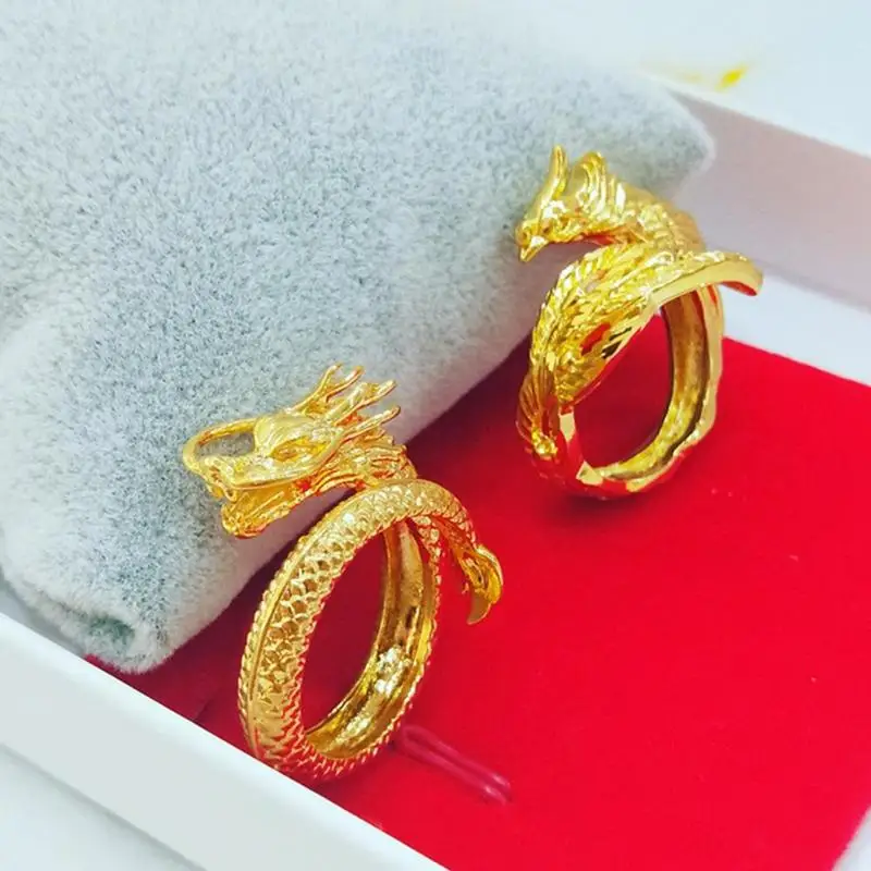 Кольцо с драконом и Фениксом для пар открытое регулируемое ювелирное изделие - купить