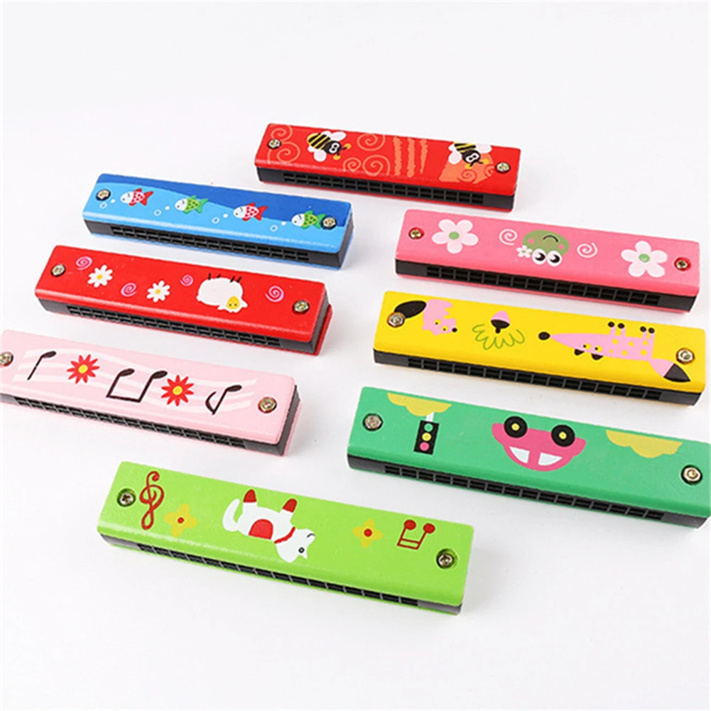 Купить Деревянная губная гармошка с 16 отверстиями, оформленная в милых карикатурных принтах для детей. Музыкальный инструмент, обучающая игрушка, подарок на День Рождения.